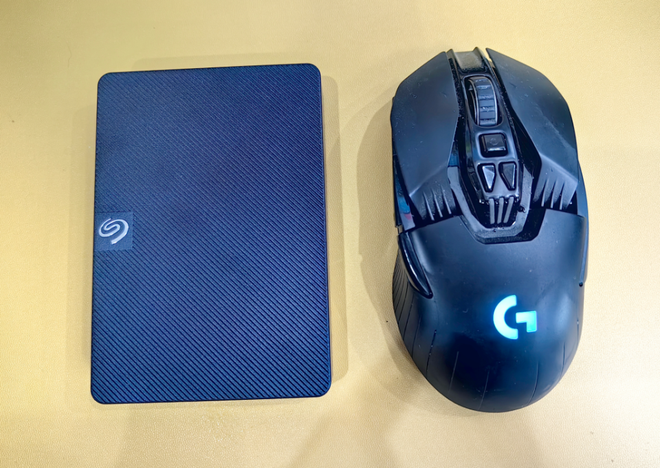 🔺硬盘的整体尺寸为115.3x80x20.9mm,对比我使用的罗技G903鼠标可以看到,它的体积比鼠标还要小一些,所以说这个尺寸已经非常便携了,可以放口袋,放随身包里都没问题。