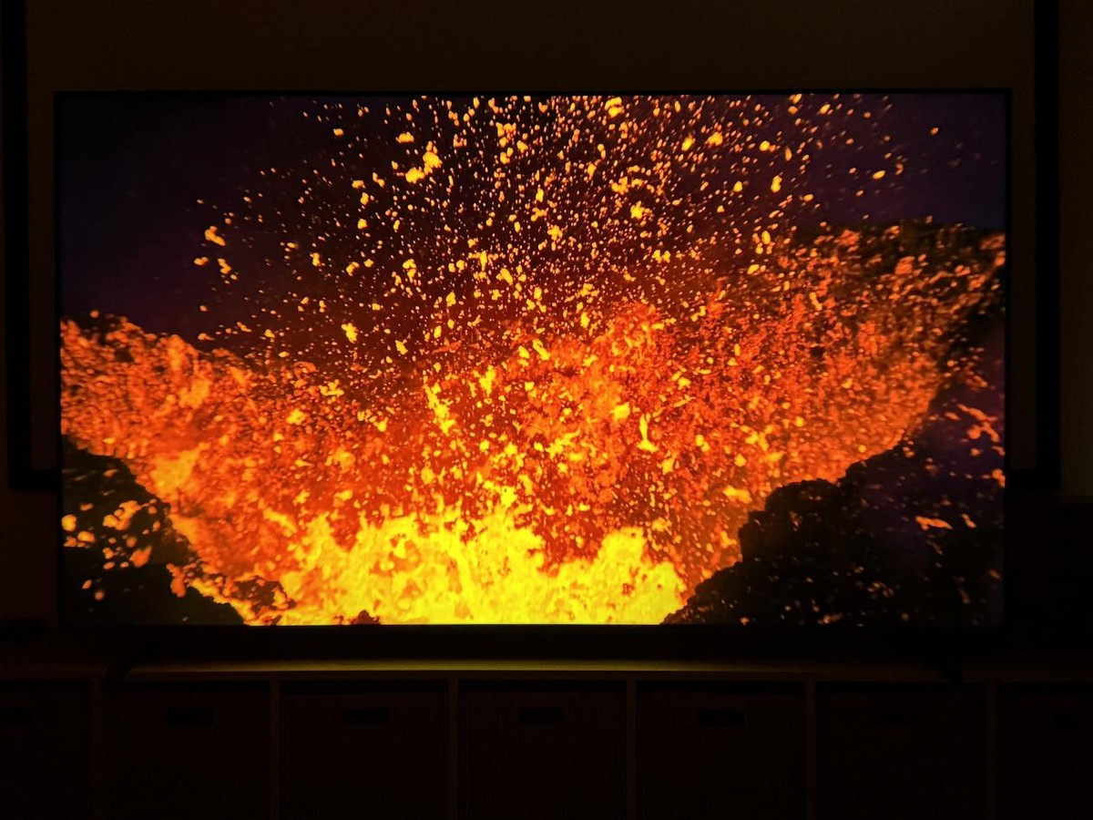 同时光有瞬时的峰值亮度也不行,稳定的峰值亮度也很重要,可以看到在播放火山喷发的画面时海信E7Q能爆发持续的高亮度,一片片火山岩浆就像要涌出画面一般,和我之前直升机直接观看的效果真的也就差高温和震动了。