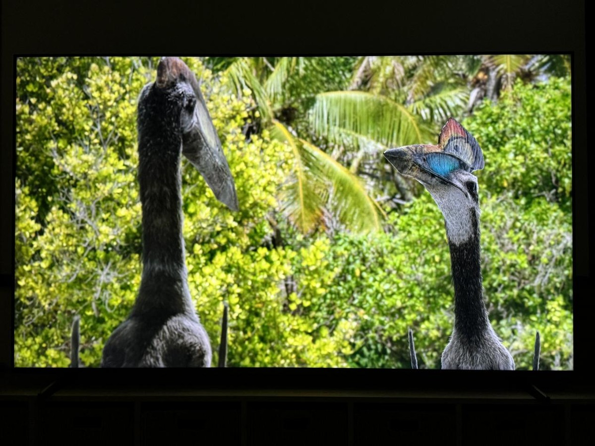 可以看到,我实测画面中的两只翼龙以及背后的丛林,都有很明显进深层次,立体性和层次感表现都十分不错,不会过于单薄。并且翼龙身上的羽毛也十分的清晰,既没有糊成一团,同时还具备蓬松感。