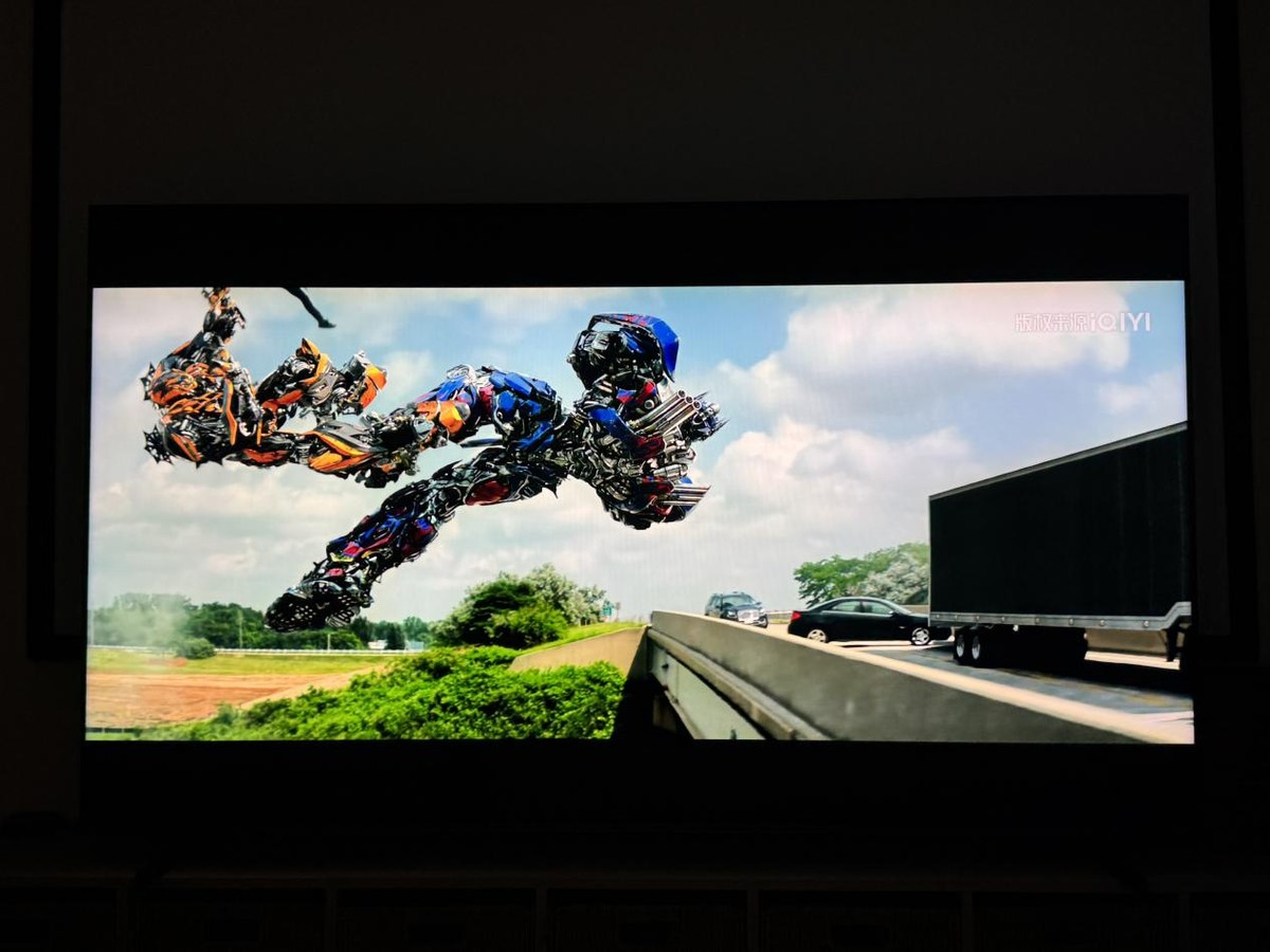 在观看变形金刚时,海信E7Q特有的侧环绕音响设计,可以让声音的包裹感十分强,就像置身于影院一般。