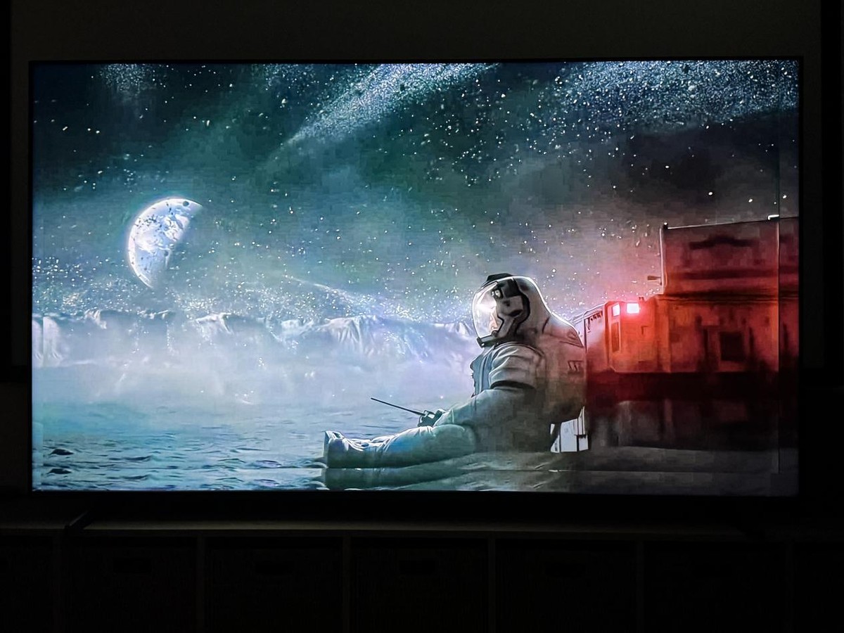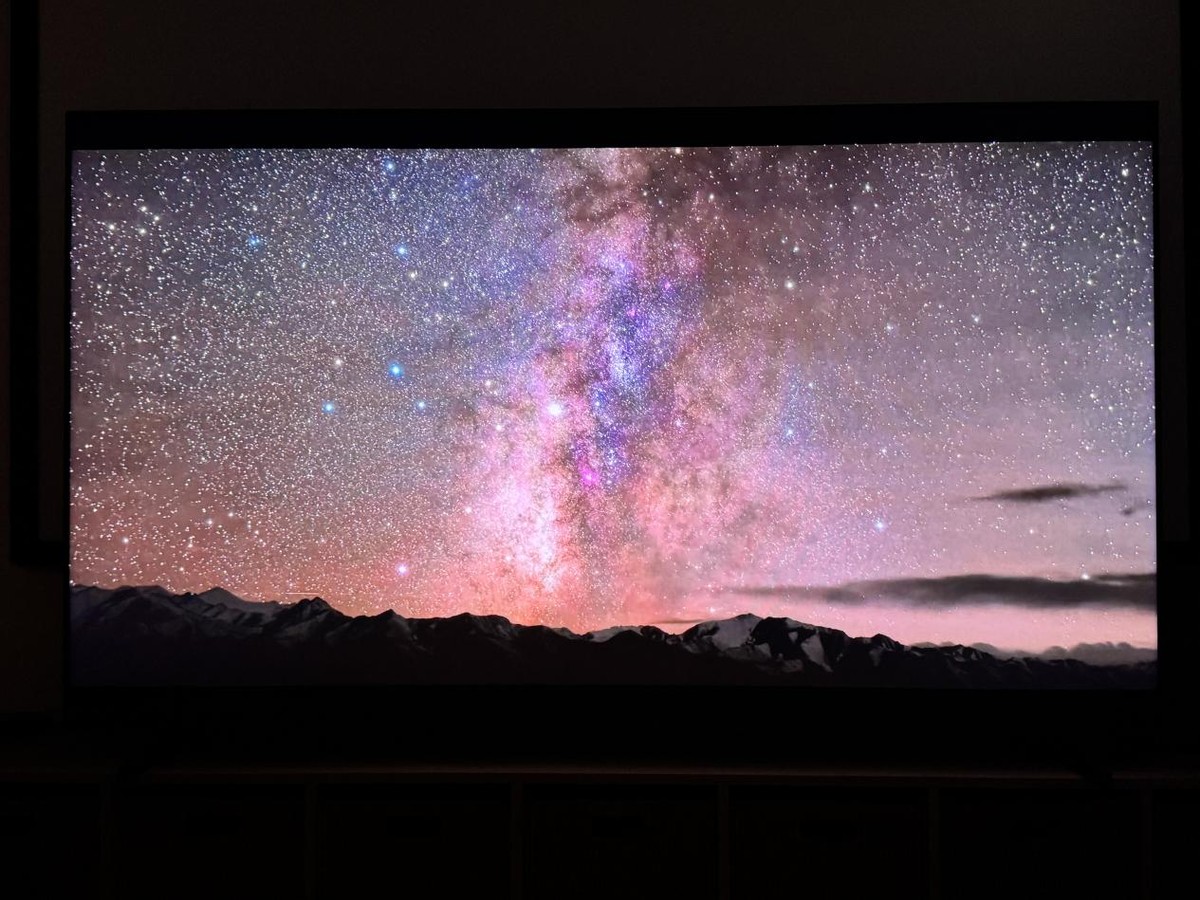 最后我们在面对更极端一点的星空场景时,不但需要画质芯片的加持,电视的高峰值亮度、多分区精准控光以及超高对比度也都十分重要。