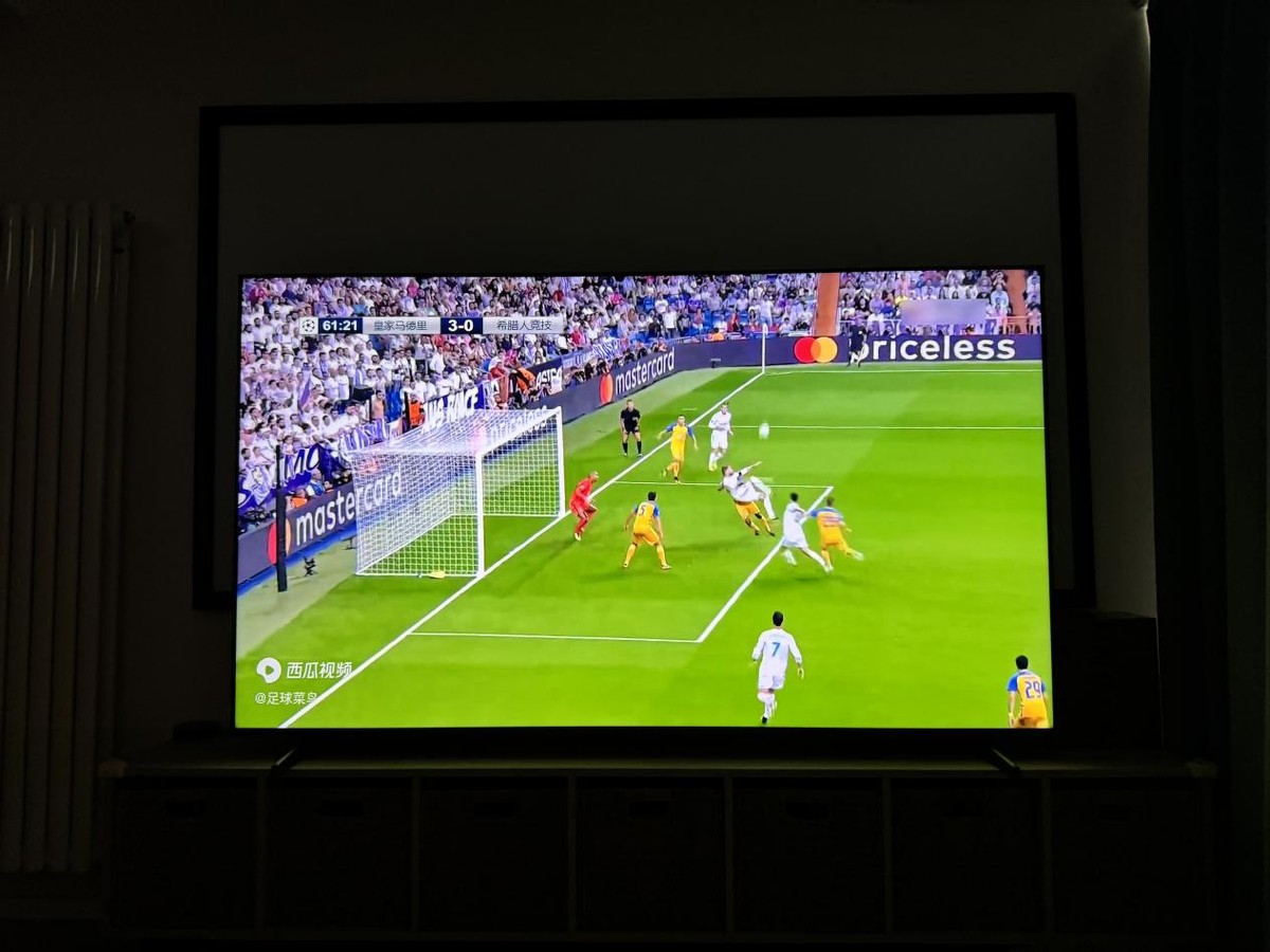 不单玩游戏体验好,看球赛时的流畅度也更优秀,避免了快速运动的残影问题后,我们能更清楚的看到每个进球和抢夺的精彩瞬间。