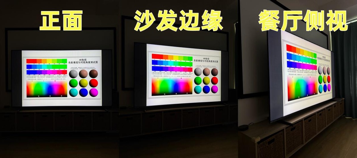 同时黑曜屏 Pro也带来了更宽的广视角,无论是坐在沙发中间,沙发边缘,甚至是在餐厅彻底侧视画面都不会有明显的色偏,色彩饱和度和亮度都能有所保证。