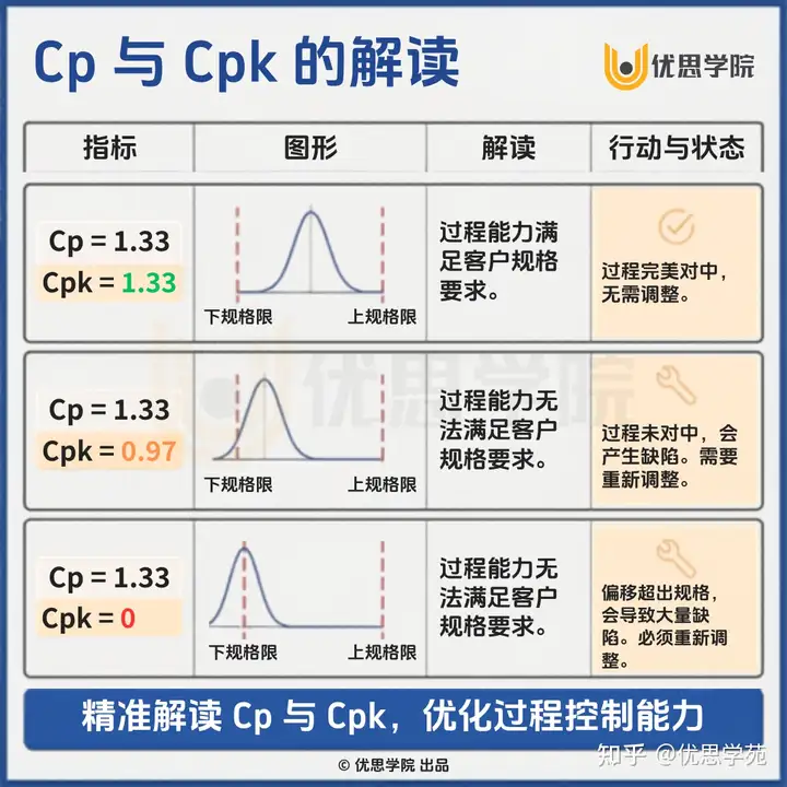也就是说,对于 Cp 高、Cpk 低的过程,优先级通常是“先调中,再谈进一步优化”。