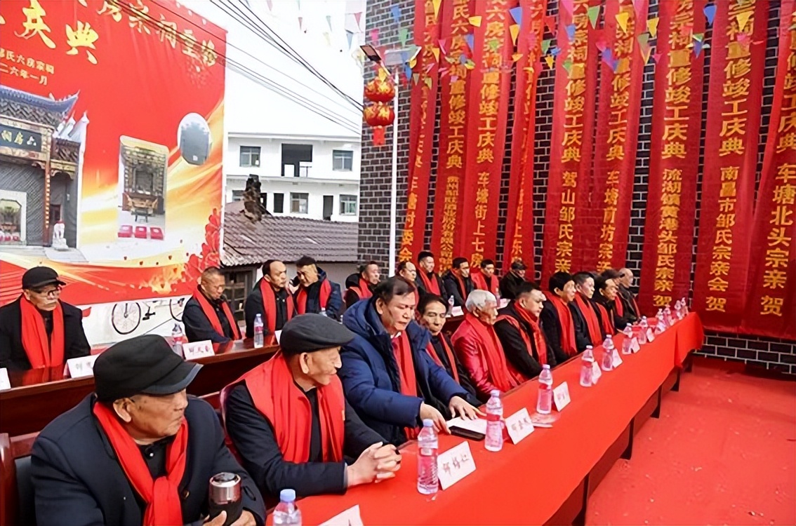 此外,为宗祠建设慷慨捐赠8.8万元的江西泽洪建设工程有限公司总经理邹仲瑜,以及在外发展的杰出代表如高级工程师邹哲、企业家邹剑樵、公安系统代表邹梅仁、党政干部邹志伟等也纷纷致辞祝贺。外嫁女代表邹秋妹、江西财经大学教授邹玉仁则深情表达了对祖地的眷恋与祝福。最后,流湖中学教师邹曙光代表家族致答谢词,感恩各方鼎力相助。
