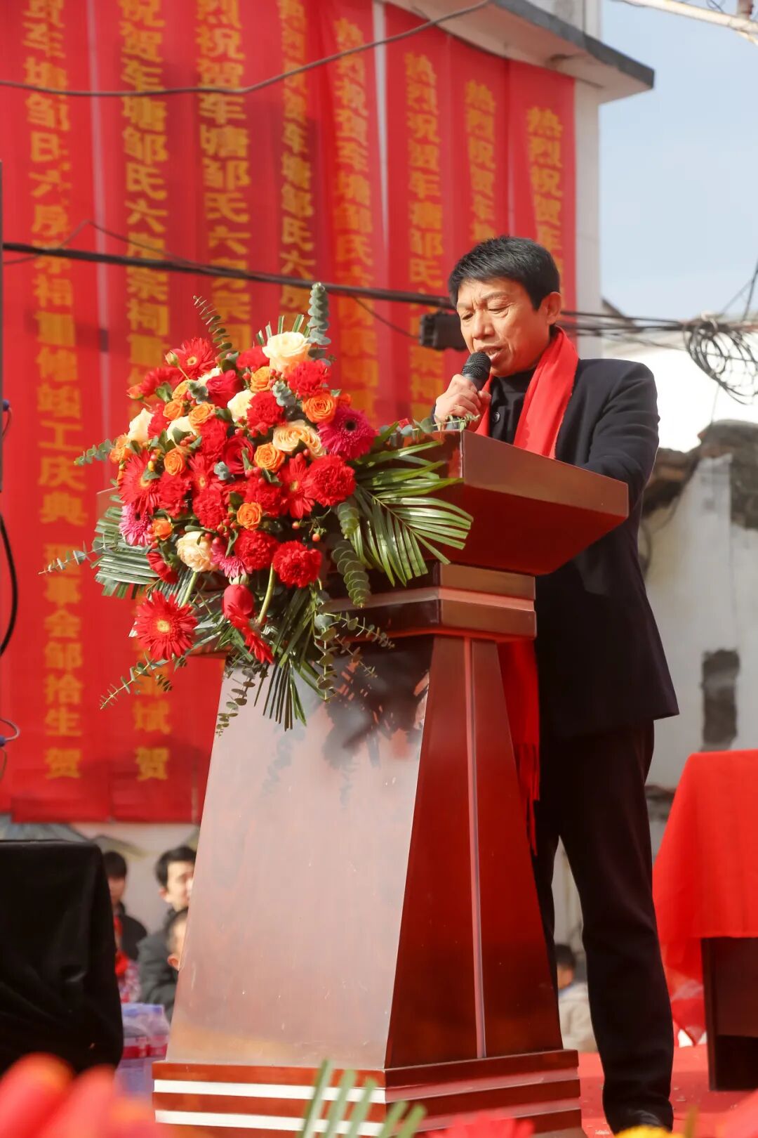 致辞环节情真意切,亮点纷呈。六房理事会会长邹小强首先致欢迎词,他向所有关心、支持宗祠建设的领导、贤达、宗亲及建设者致以感谢,并指出宗祠的建成是家族团结一心、薪火相传的象征,未来将成为教育后辈、弘扬“忠孝仁义、耕读传家”家风的精神家园。