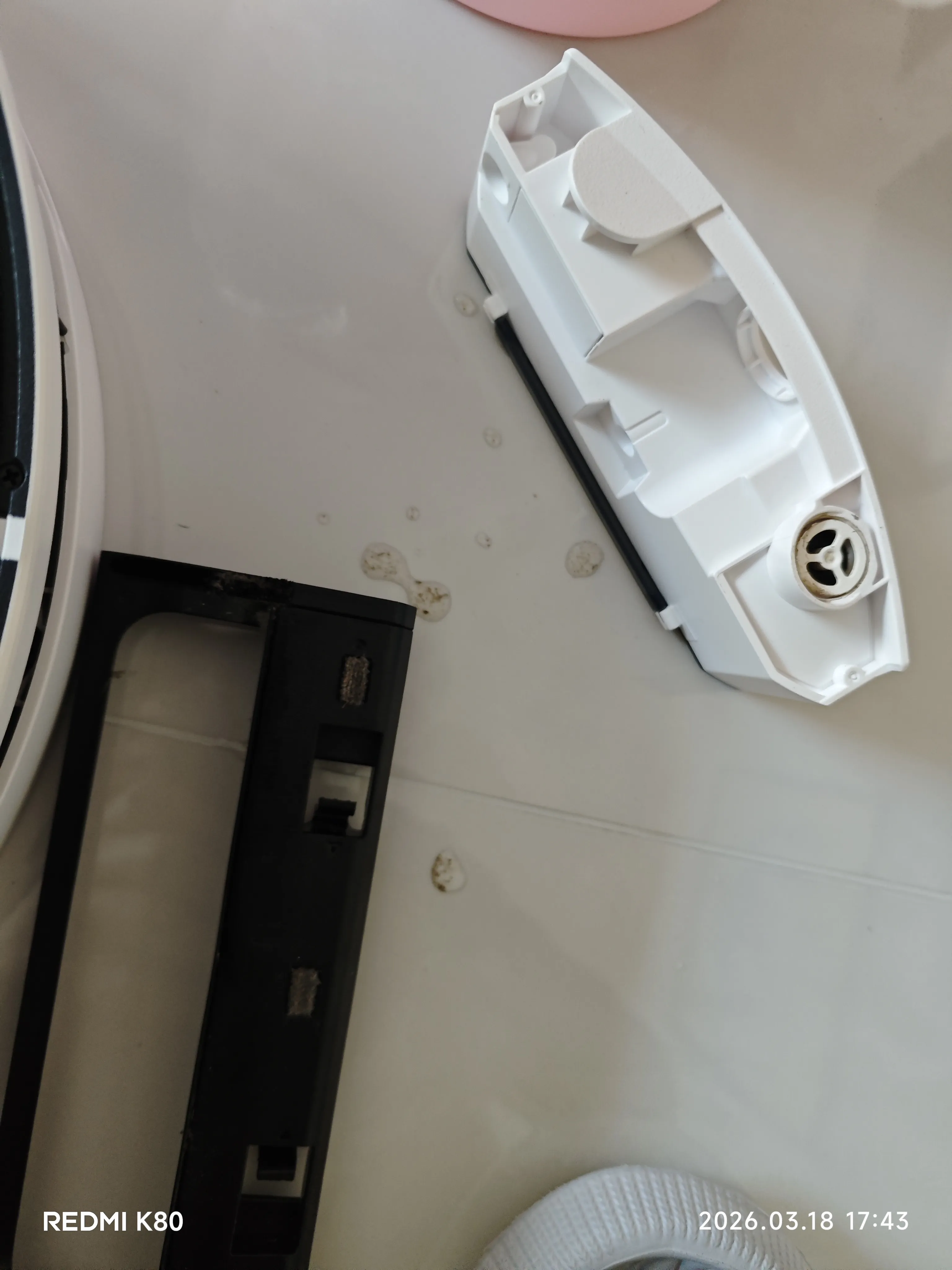 又把滚轮拆了下来,这个机器设计的很精妙,基本啊不用什么工具,徒手完成,就是各种卡扣要用点劲,但不能硬掰,防止卡扣断裂。