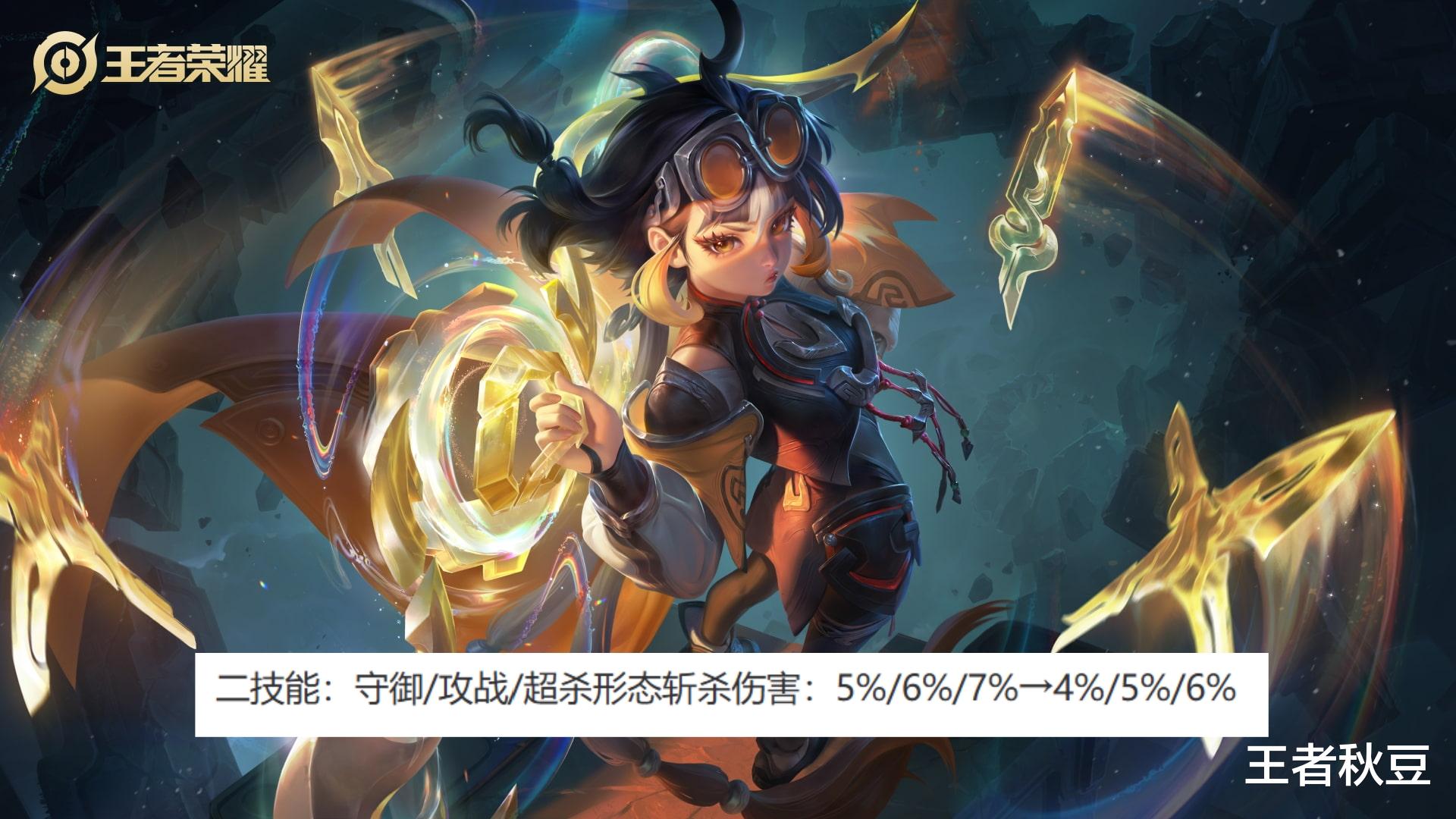 蚩奼二技能的三种形态斩杀伤害全部降低1%,其实这就是抢先服时候的数值伤害,只是正式服上线又提升1%,没想到新赛季才一周多就重新回调下去,结果肯定就是二技能全部斩杀伤害降低1%,纯数值的削弱。可能是发现削弱后的蚩奼胜率依旧又51%以上,强度也没弱太多,才会继续小砍,降低发育和输出伤害吧。