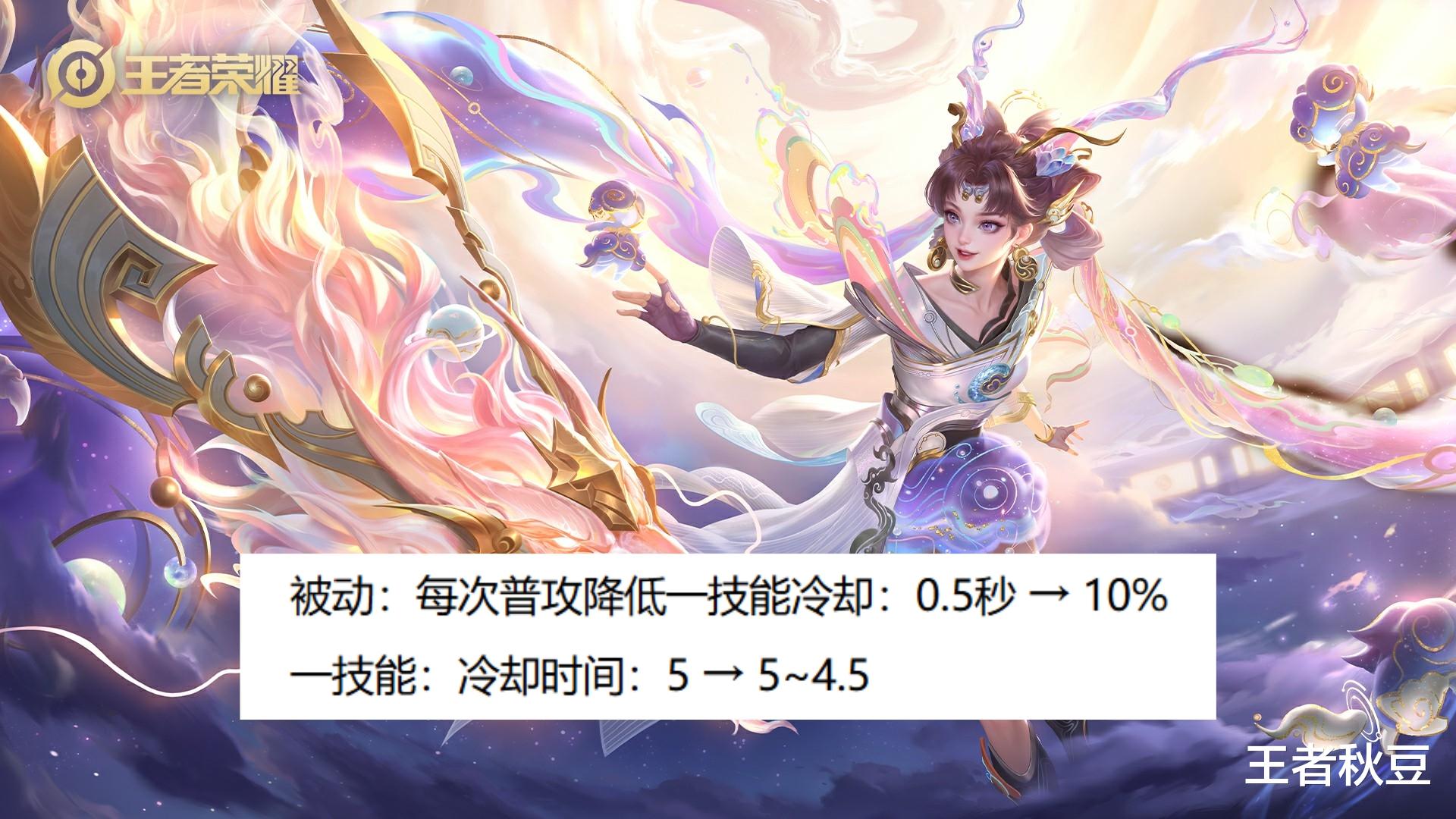 孙尚香一技能冷却时间从5秒调整为5~4.5秒,后期减少0.5秒。但是被动每次普攻降低一技能的冷却从0.5秒调整为10%。我们按孙尚香正常出装为例,就一把暗影战斧降低10%冷却,基本上属于全期加强,但是感觉并不是很明显,只能算是小小加强。