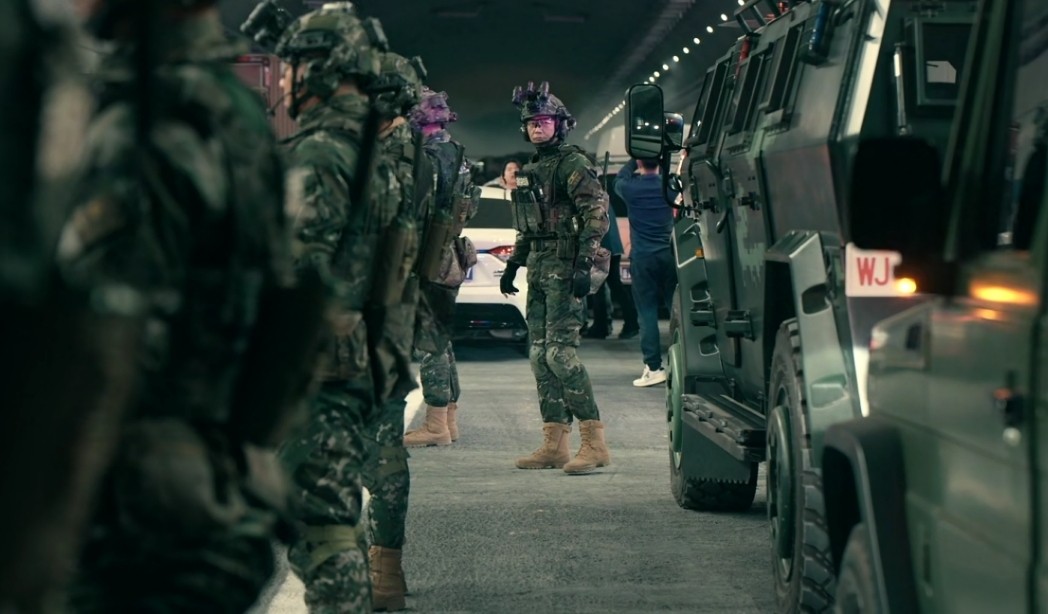 猎豹突击队代理队长凌峥嵘(杨烁饰演),正坐在车上为运送高考试卷的车辆开路,看到厢式货车贴着封条,熟悉感扑面而来。
