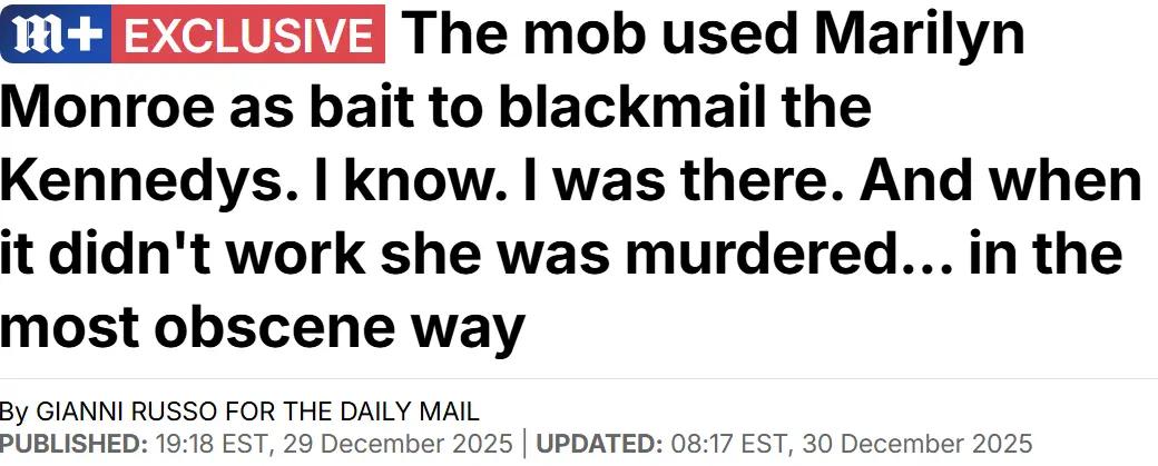 吉安尼相信了他的说法,因为就在梦露死前一周,他就听到了纽约黑手党大佬告诉他——