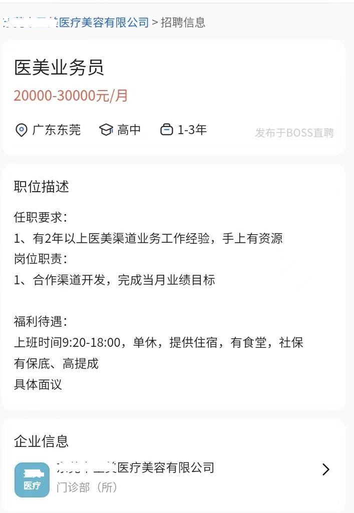 网上发布的高薪招聘医美渠道员信息(作者供图)