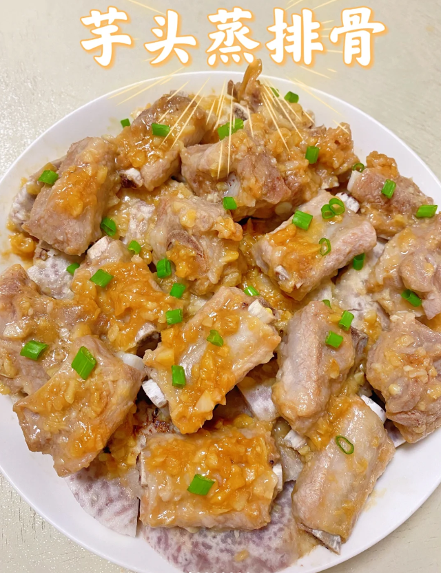 芋头蒸排骨是一道融合了芋头和排骨优点的美味佳肴。芋头含有丰富的纤维、维生素C和B族维生素,以及多种矿物质,对于提升消化健康和增强免疫系统有很好的作用。排骨则提供了丰富的蛋白质、铁和锌,这些都是维持身体健康和增强肌肉所必需的。