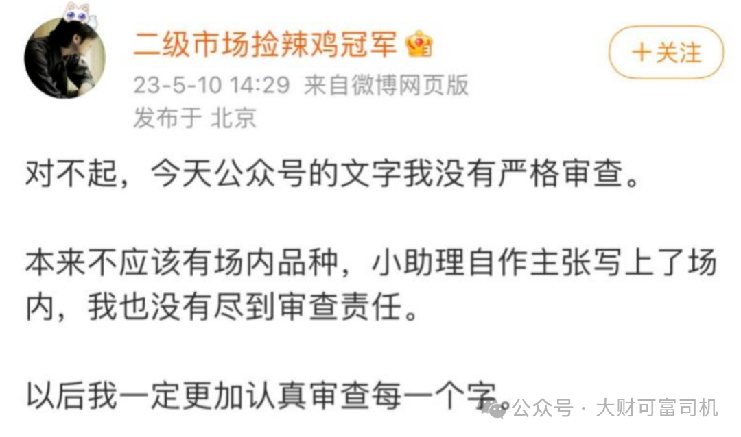 后来,E大在微博道歉,说这是小助理不懂金融知识,误加了场内代码,他自己和团队都没买过这只基金。这件事情也侧面说明,E大的一句话,真能带动几万甚至几十万粉丝动起来,这种影响力在整个基金大V圈里堪称顶流。