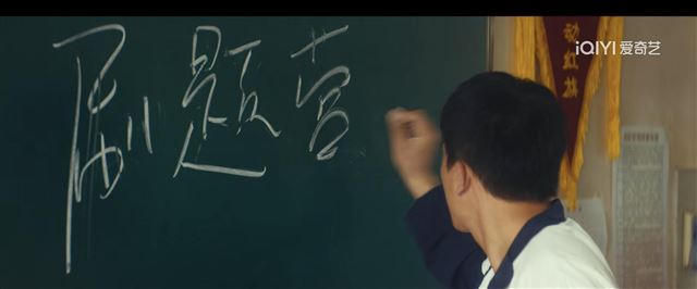在《北上》中,欧豪冲上讲台要带老师赚大钱时,在黑板上写下了“刷题营”这几个字。