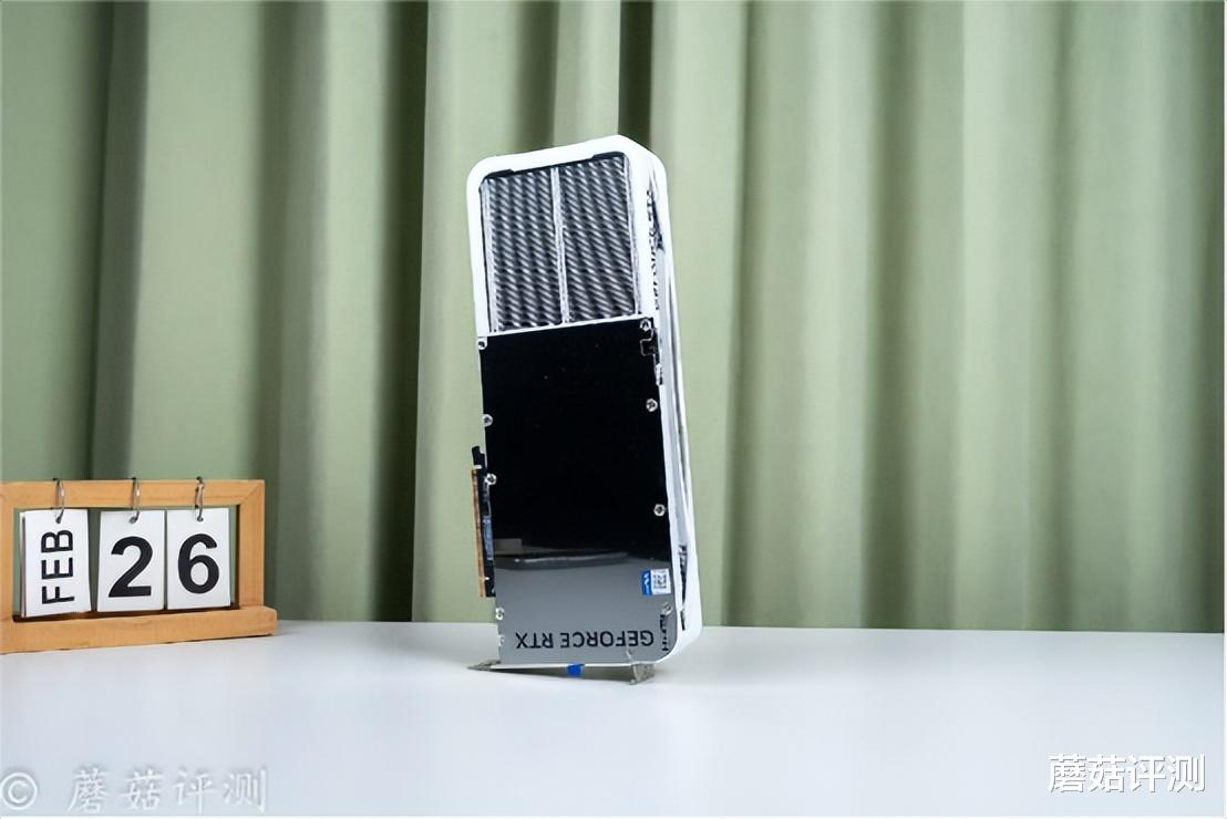 ▼显卡的背板标配一块镜面背板,尾部有大面积的镂空,方便散热风扇吹透散热鳍片,提高散热效率。