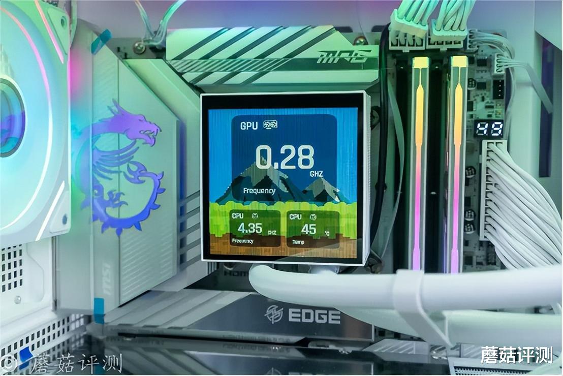 ▼水冷头顶部的这块屏幕,显示面积还是非常大的,并且采用了特殊的窄边框设计,有点全面屏的感觉。