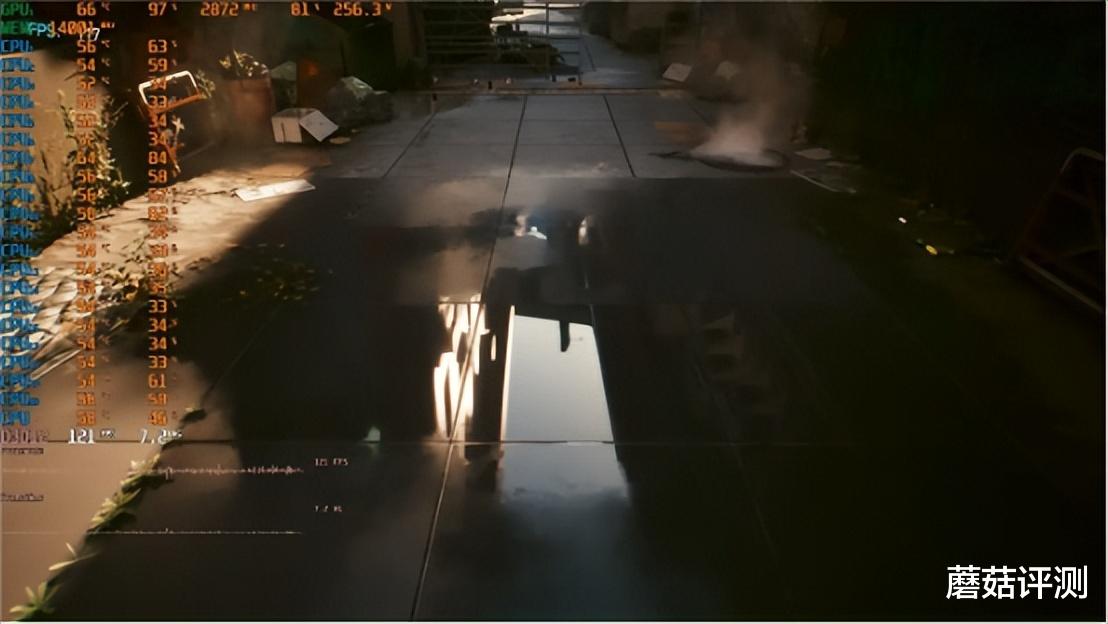 ▼室外游戏帧数在121帧左右,水滩内的倒影很真实,显卡占用97%。