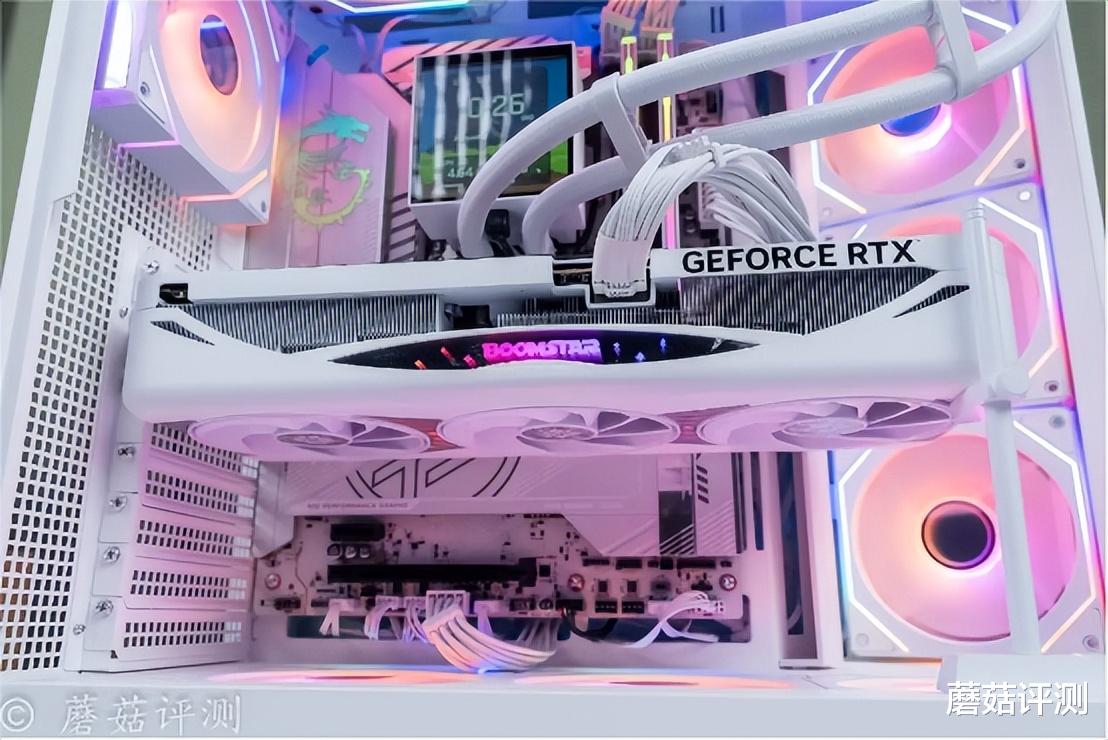 ▼显卡默认水平安装,并在显卡尾部撑一个标配的显卡支架。