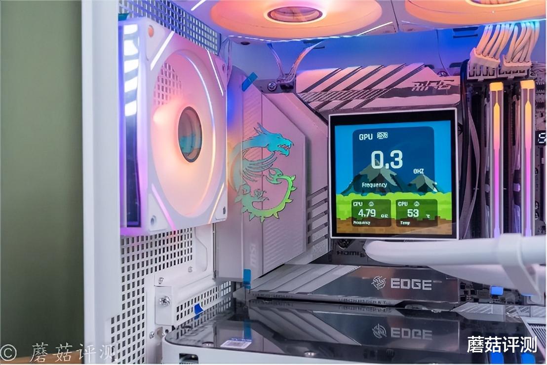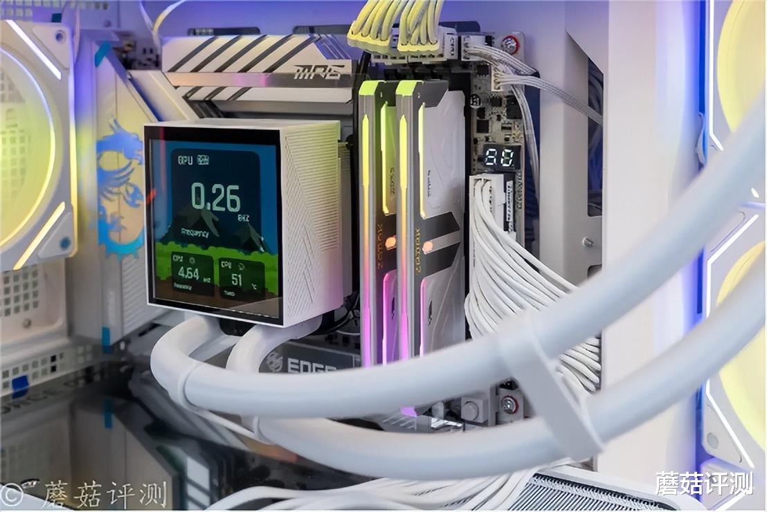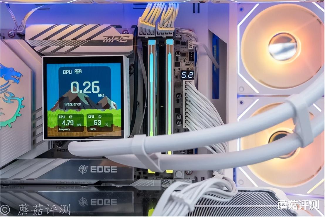 ▼水冷轻松安装到机箱顶部,顺手把水冷头安装好,水冷头顶部的屏幕采用磁吸式固定,轻轻放上去就能安装的很牢固。