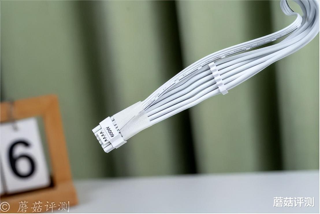 ▼电源尾部的模组输出接口,除了主板供电接口和PCIe 5.1供电接口之外,还标配5个+12V的8Pin辅助供电接口,4个6Pin的SATA供电接口。另外,电源的供电接口偏向一侧,方便在电源正常安装的时候插拔模组线。