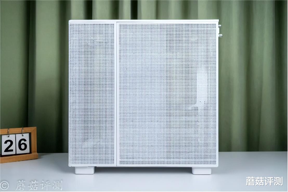 ▼机箱背面,是两块金属背板,且均有密集、完整的金属冲孔网处理。
