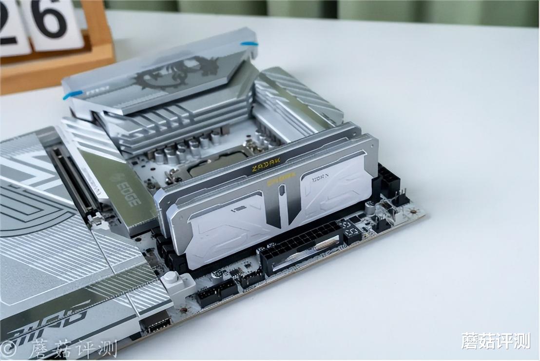 ▼这套内存的金属马甲很漂亮,采用两种不同的表面处理,搭配微星这块Z890刀锋钛主板非常适合。