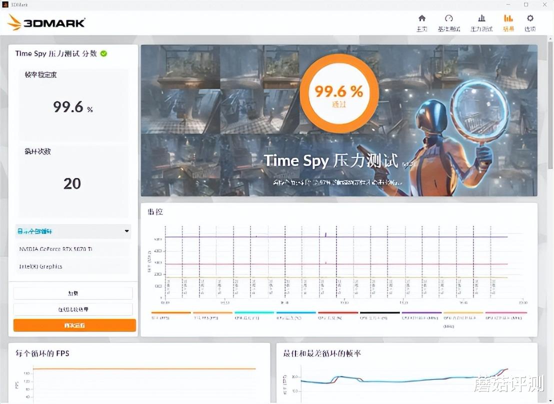 ▼跑个3Dmark的压力测试,TS模式,帧数稳定率在99.6%,非常稳定。