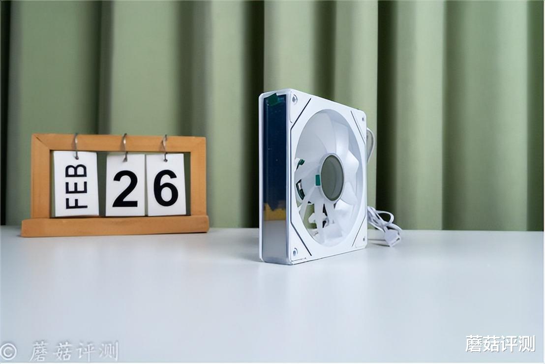 ▼这款风扇的颜值很漂亮,风扇扇叶中间是经典的无限镜设计,扇叶是乳白色的,柔光效果不错,风扇框架的四周还有一些LED灯带。