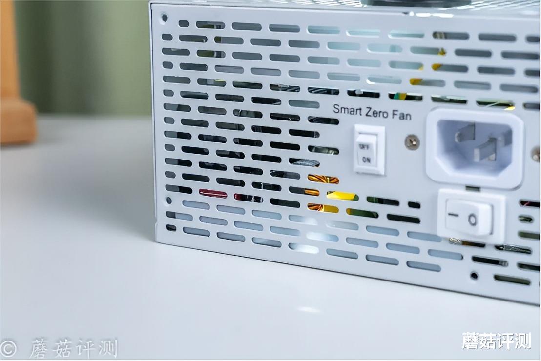 ▼电源侧面的颜值很漂亮,贴纸是真好看,底部还有侧面的进风格栅,辅助进风,提供更加出色的散热效果。