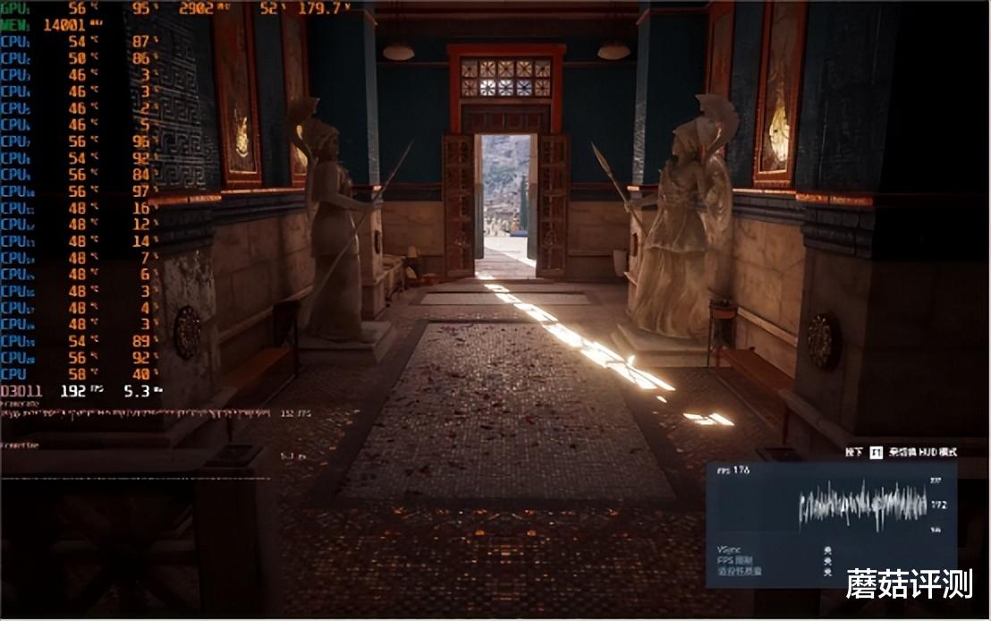 ▼众生平等奥德赛,2K分辨率,极高画质,体积云最低,走廊游戏帧数在192帧左右,非常流畅。