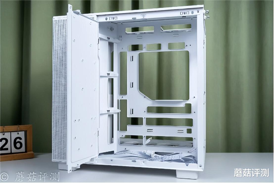 ▼这款机箱最大支持ATX规格的主板,支持背插主板,主板四周有丰富的走线开口,右侧还有理线罩。