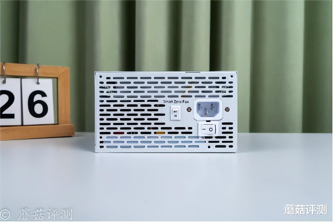 ▼电源尾部,熟悉的电源供电接口,下面是开关,旁边还有一个小的Smart Zer Fan开关,可以控制电源散热风扇的智能温控模式,可以根据需求选择。