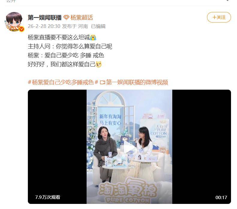 当身着温婉民国戏服的“董竹君”对着镜头,一脸认真地说出“爱自己”的秘诀是“少吃、多睡、戒色”时,这场直播的效果瞬间拉满。2月28日,杨紫在直播中的这句直白回应,以其巨大的形象反差感,火速冲上热搜,引发了一场关于“如何才算真正爱自己”的全民调侃与解读。