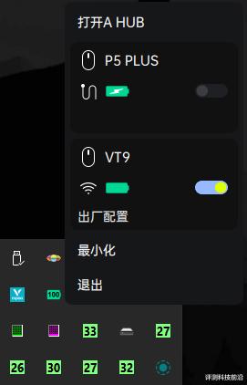 ▼发现主页显示的鼠标颜色不对不要着急,进入“鼠标设置”里可以切换驱动显示的鼠标颜色,还能调节休眠时间,驱动右上角设置进去能开启在系统右下角显示电量指示图标,很不错的小设计,P5 PLUS的工作状态也能显示