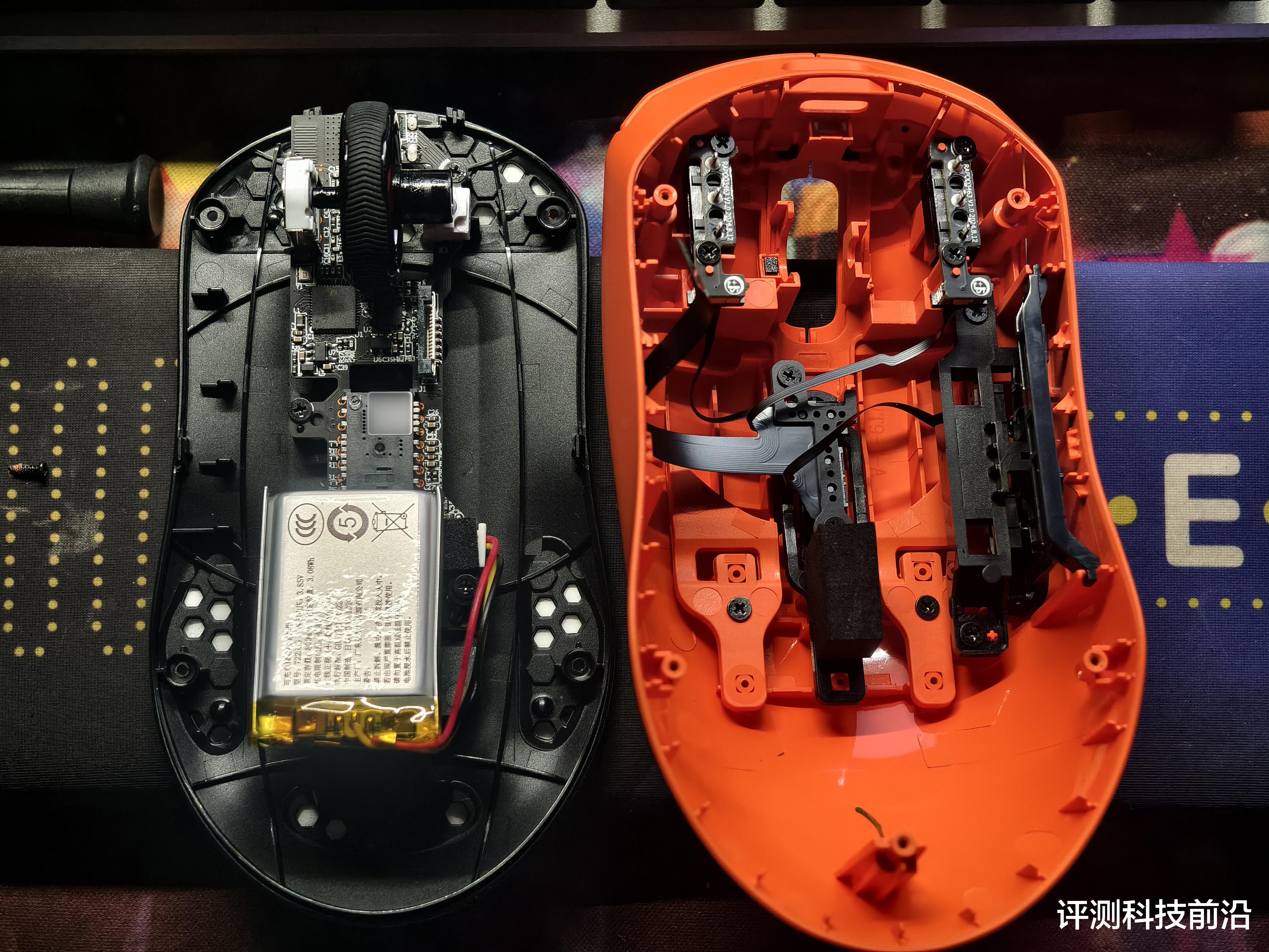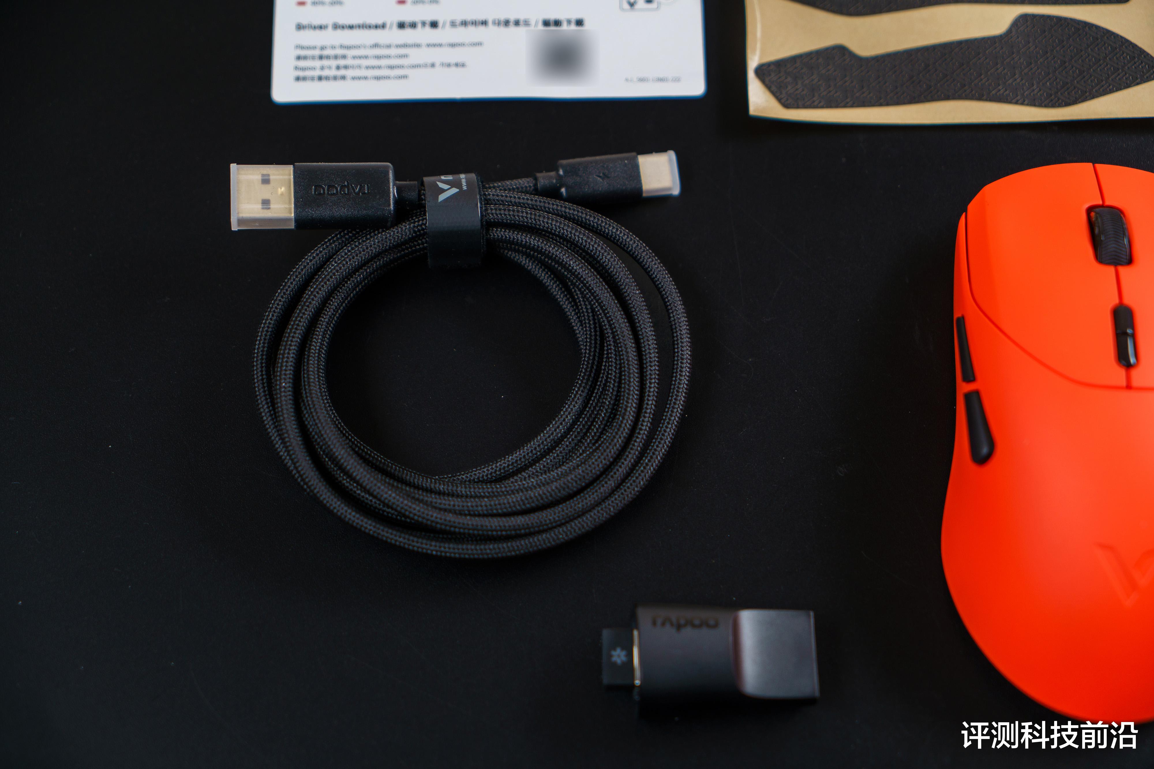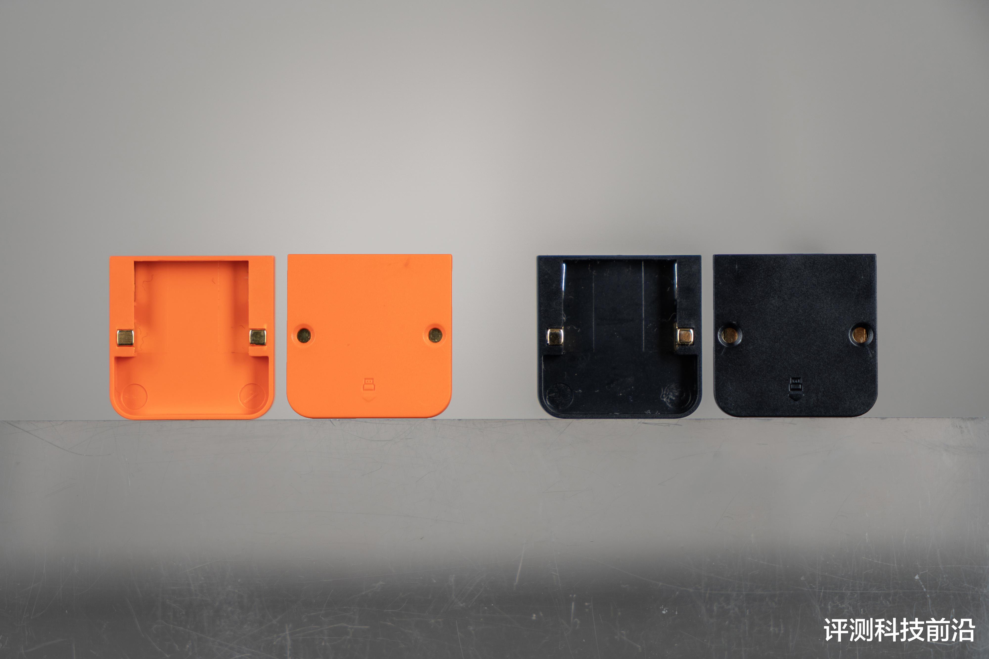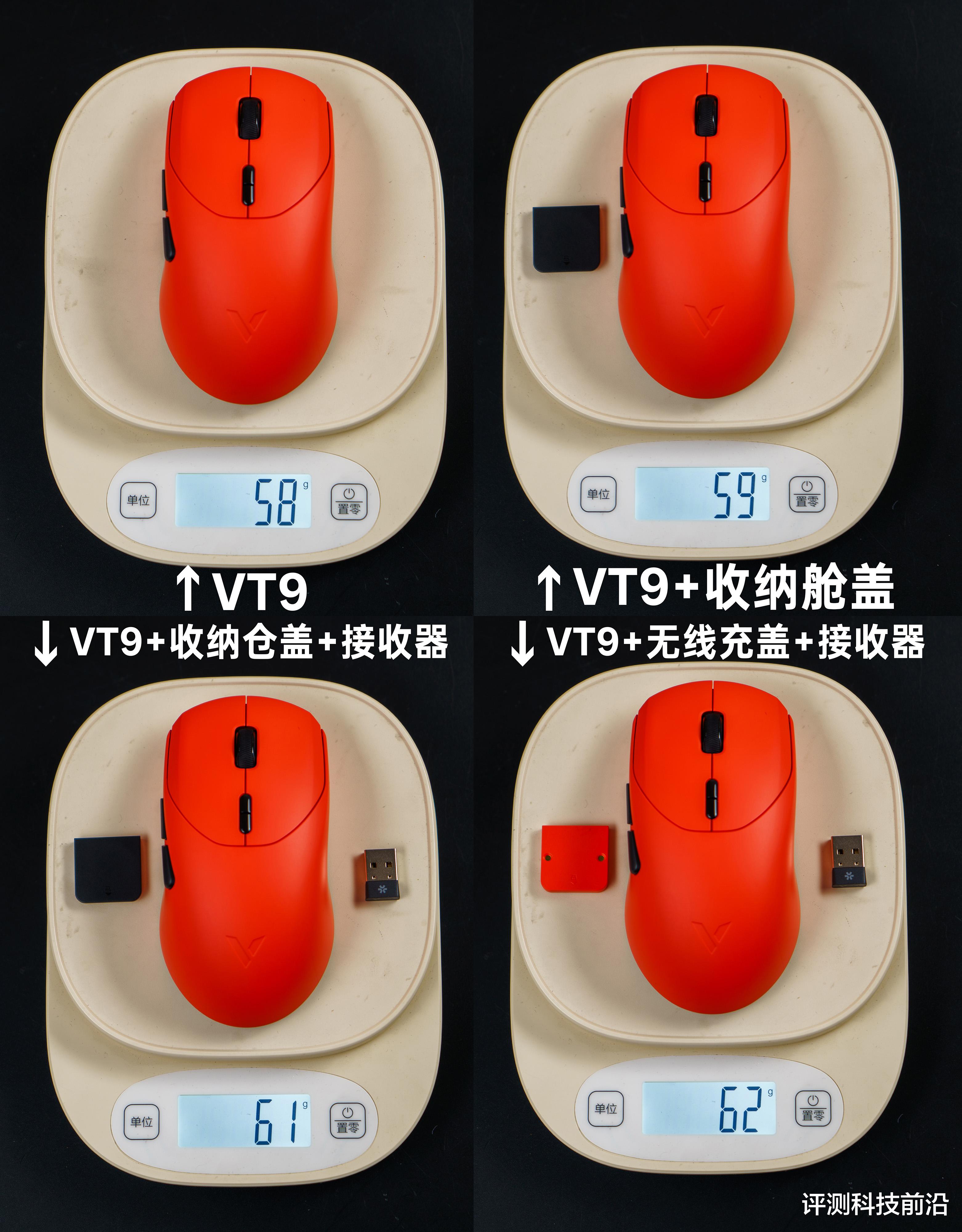 ▼主体部分都是焰影橙颜色,脚垫则是白色,不过我个人建议脚垫用深色的比较好,因为平放桌面之后是可以清晰看到脚垫侧面白颜色,导致脚垫存在感比较强,比较抢眼,如果采用深色(比如黑色)就不会那么显眼了;VT二代改进后的接收器收纳仓确实不错,继续保持