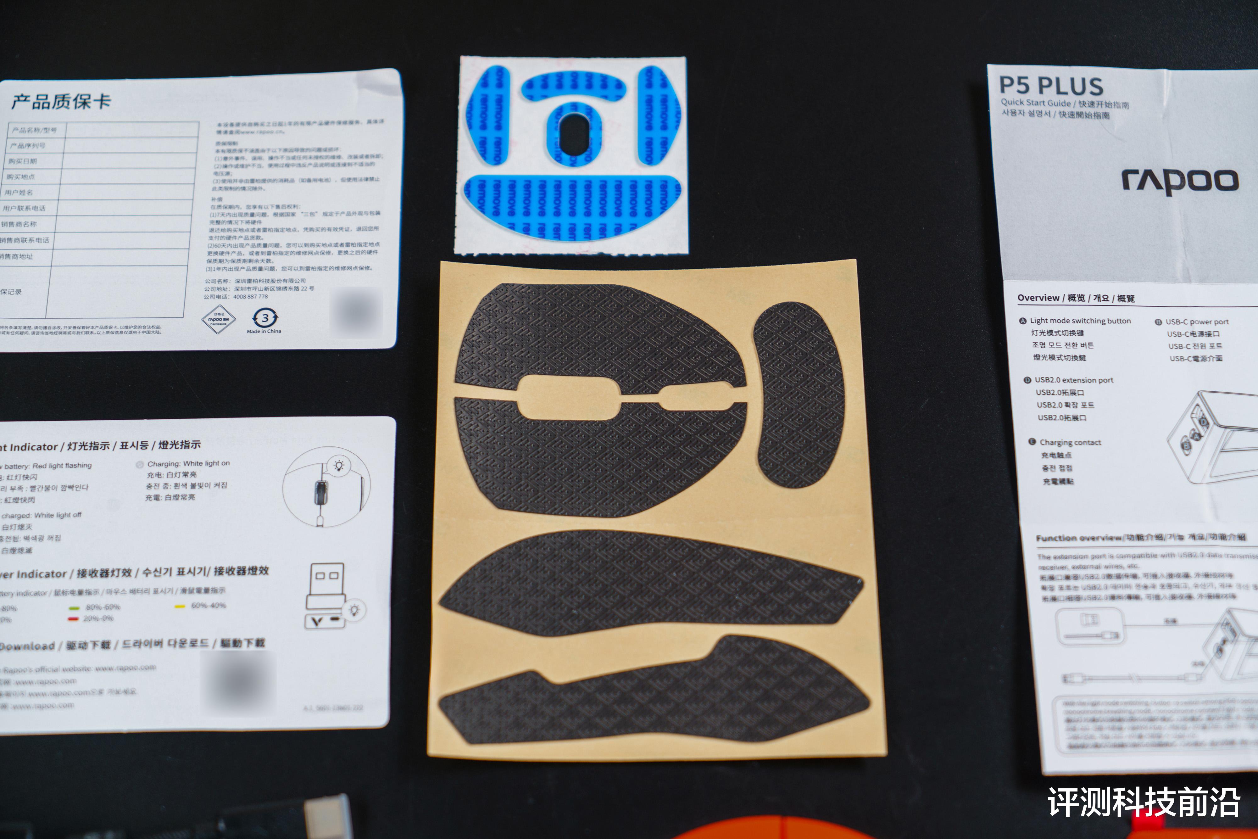 ▼除了鼠标本体之外,有VT二代标准的配件:一根镀金接口的编织线、一个USB转接器、一个微型nano 8K接收器、一本使用说明书、、一张保修卡、一张防滑贴、一张备用PTFE特氟龙脚垫;而P5 PLUS除了有一本使用说明书和对应配套颜色的磁吸盖之外,还给额外配了一个黑色的磁吸盖,选择权完全交给了用户自己,小细节贴心得很,就这一点很少有品牌能做到吧?有些配件确实是我可以不用,但是不能没有