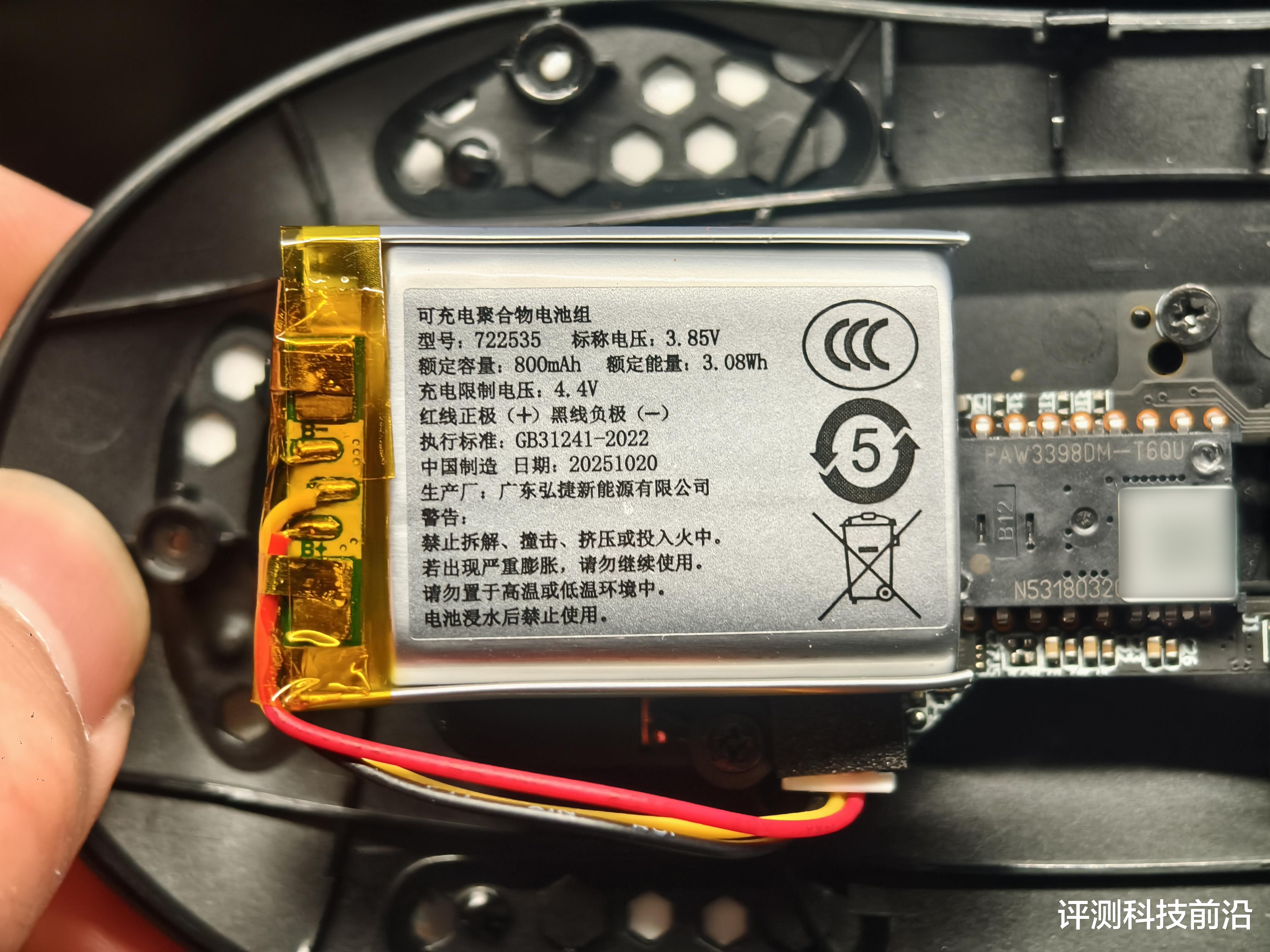 ▼撕开脚垫,拧掉上两颗下三颗螺丝,用指甲在上下盖缝隙处划一圈并往外撬,然后往后推就可以拆开了,比较轻松,拆开后会有上盖按键的排线连着下半身,注意不要扯断了;电池容量VT9二代全系都是800mAh,可能是在续航和重量上做了妥协