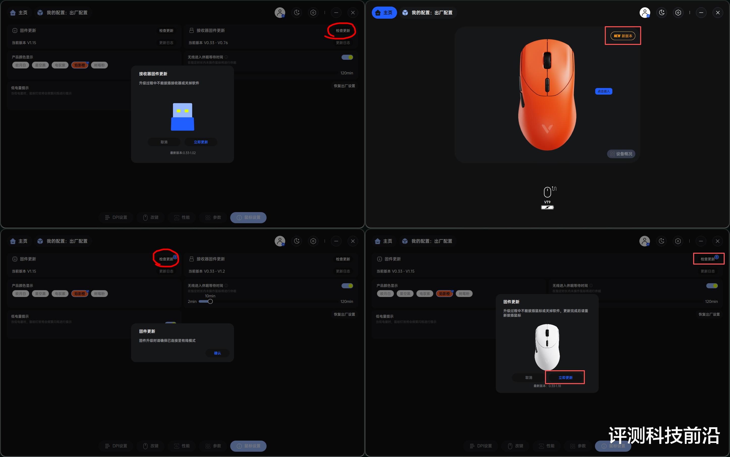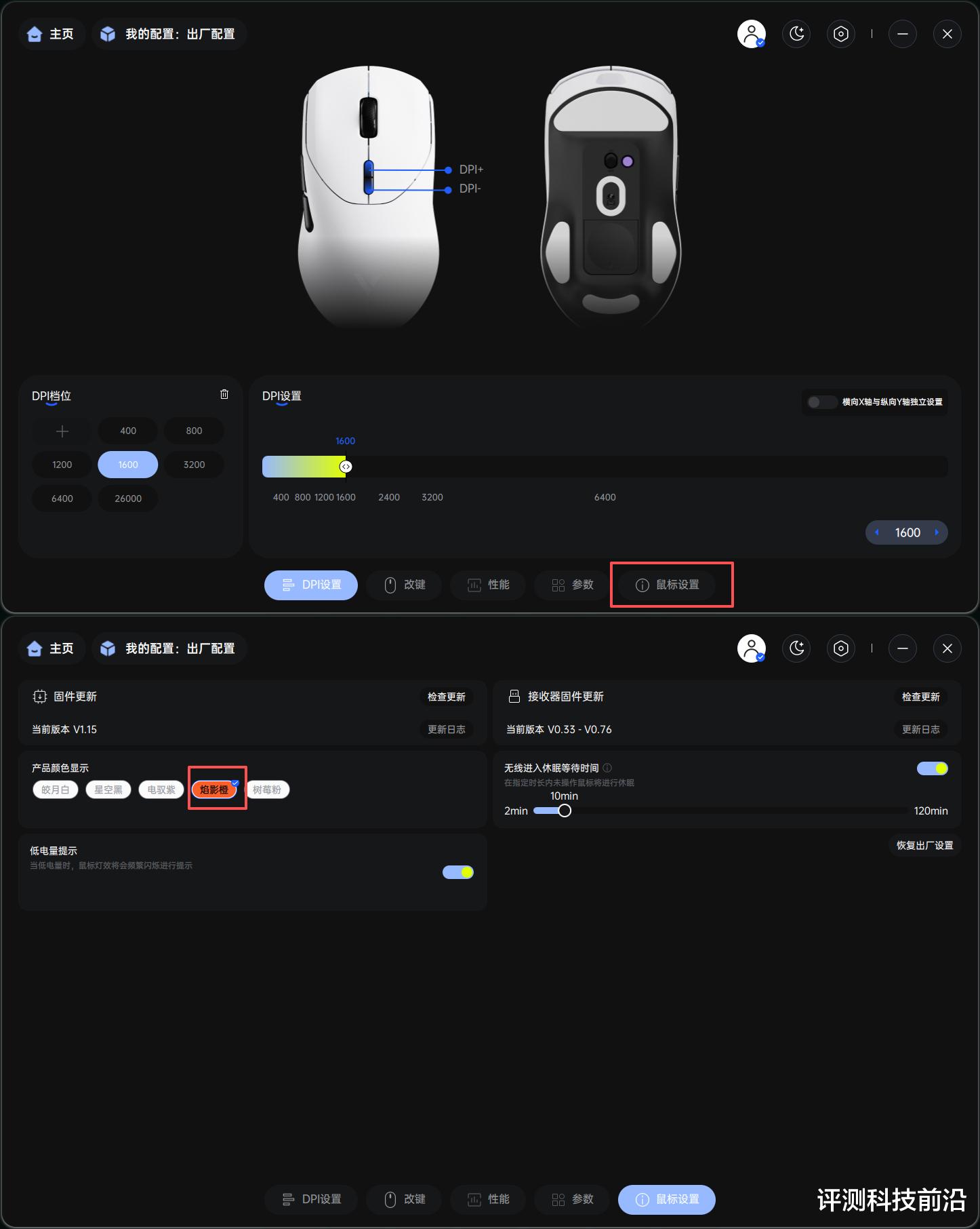 ▼该功能标签页还可以对鼠标本体和接收器进行固件更新,本体更新需要有线连接,建议大家到手就先更新到最新,以体验到当前最全最强的功能和性能