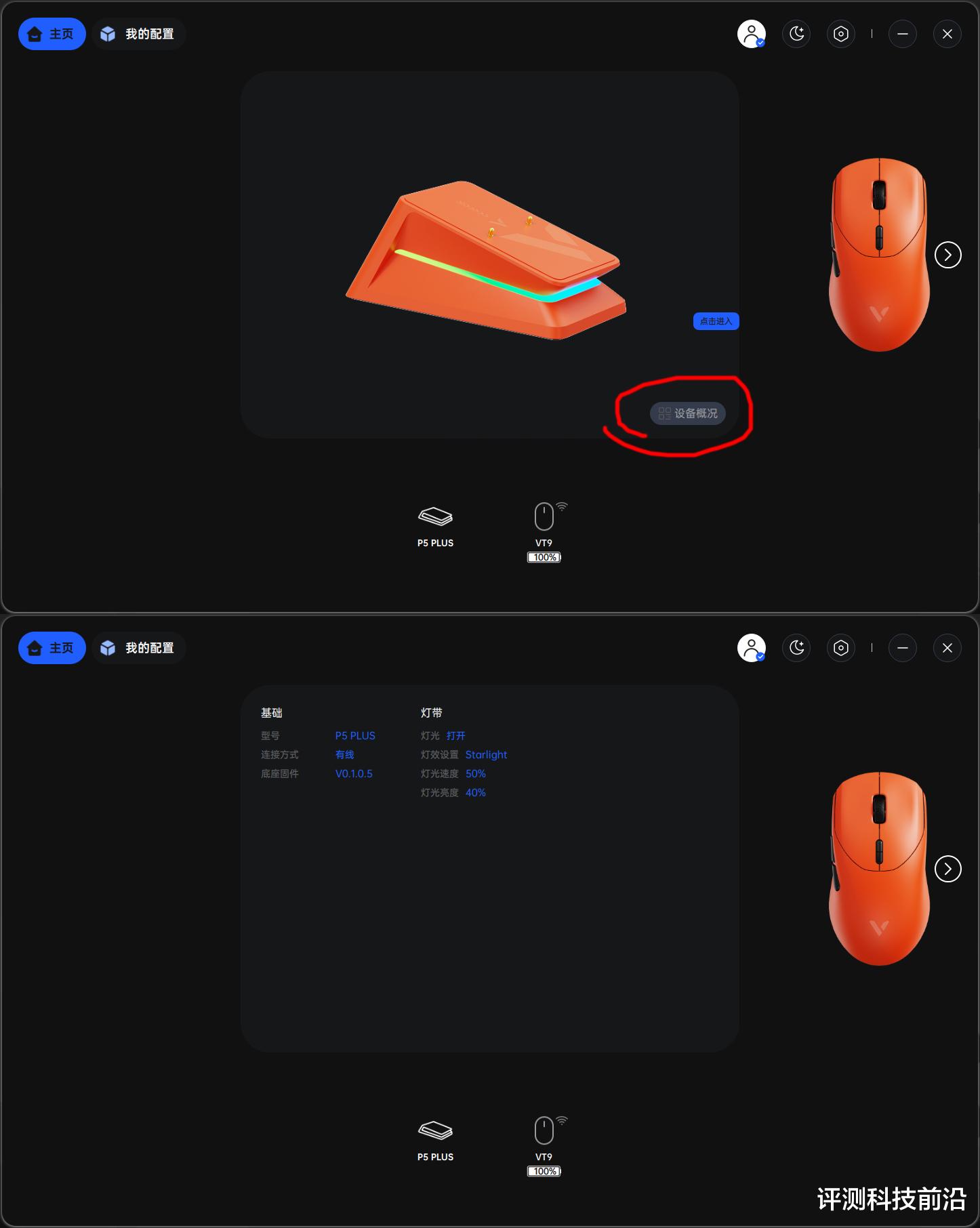 ▼连上二代无线座充P5 PLUS后,驱动也能识别,也支持在设备主页显示设备概况,进入设备之后还支持对RGB的颜色、显示模式、亮度等进行调节。