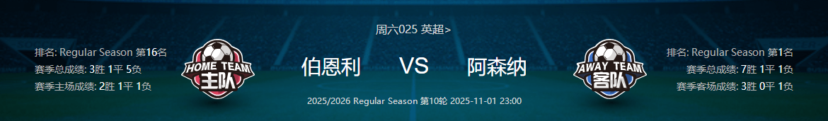 周六025英超伯恩利VS阿森纳
