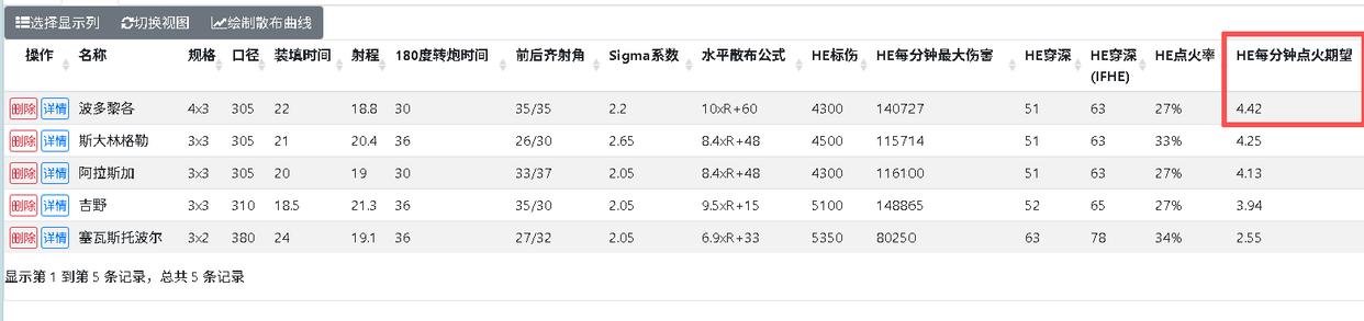 作为一艘大巡,波多黎各的主炮是研判其性能的重点。它装备了12门305毫米主炮,拥有22秒一轮的基础装填时间,投射量极大。在发射HE时,DPM可以达到14万,点火期望值高达4.42,已经不亚于隔壁Y系的点火专家了。