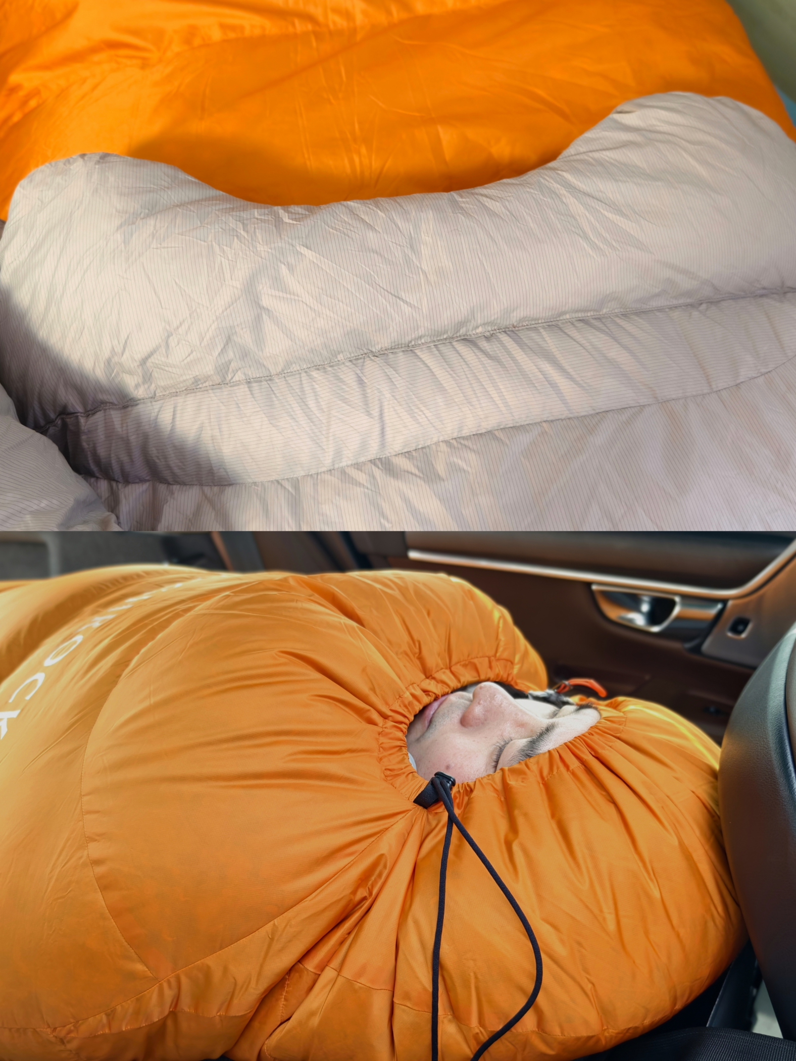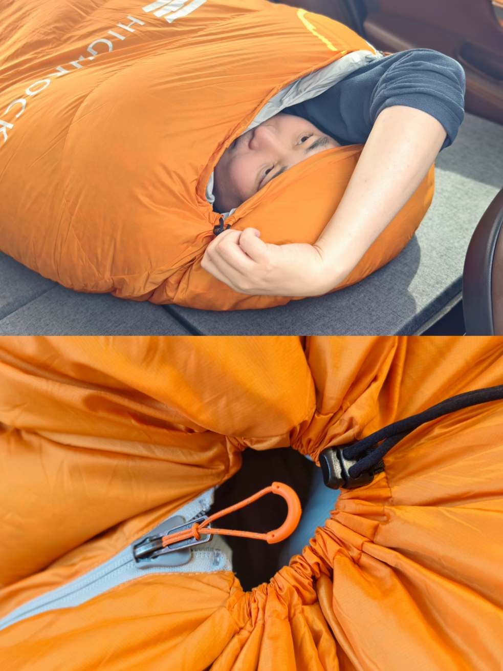 露营时在白天阳光足时可以把睡袋晒的蓬蓬的。日落时你就拥有一个超级蓬蓬的软糯空气羽绒袋。