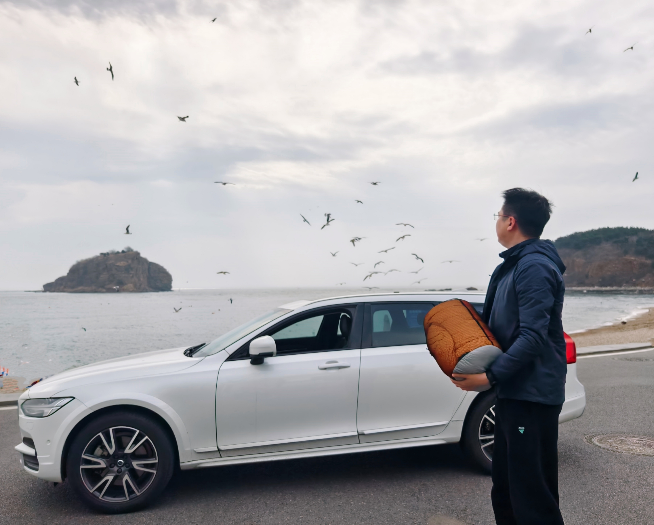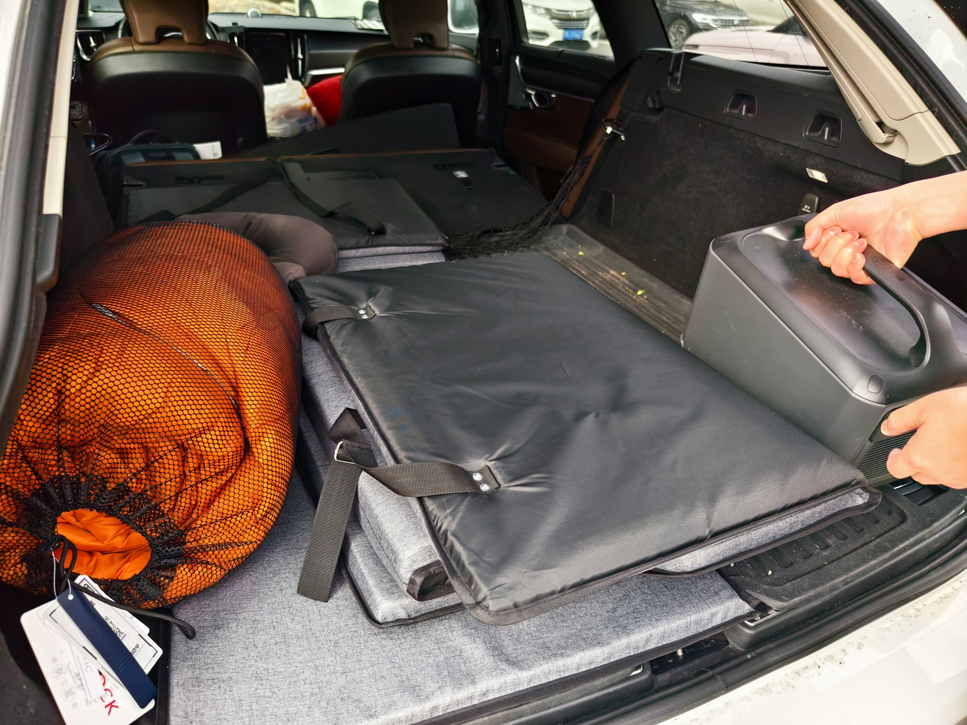 我这次出游驾驶的是沃尔沃旅行版V90cc,车身超长,我191的身高可以在后备箱伸直躺平。