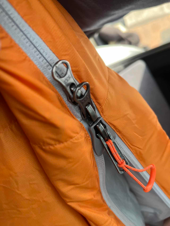 睡袋关键的拉链处。采用了YKK双头拉链,丝滑度可想而知,质量是杠杠的。