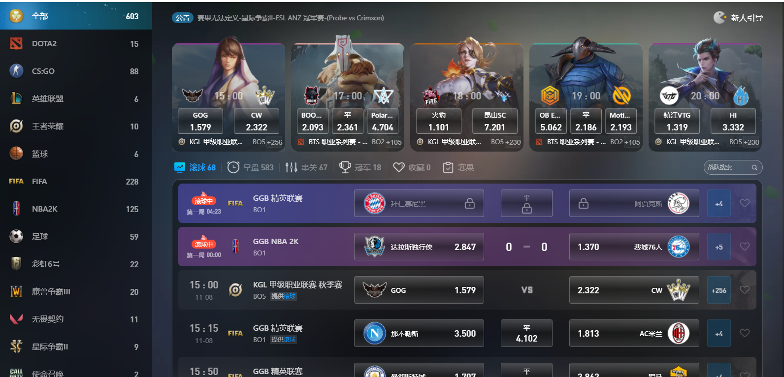 几乎所有的电竞游戏都能在平台上找到相关的盘口进行投注