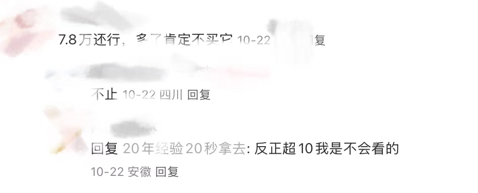 “7、8万还行,多可肯定不买它”“反正超10我是不会看的”