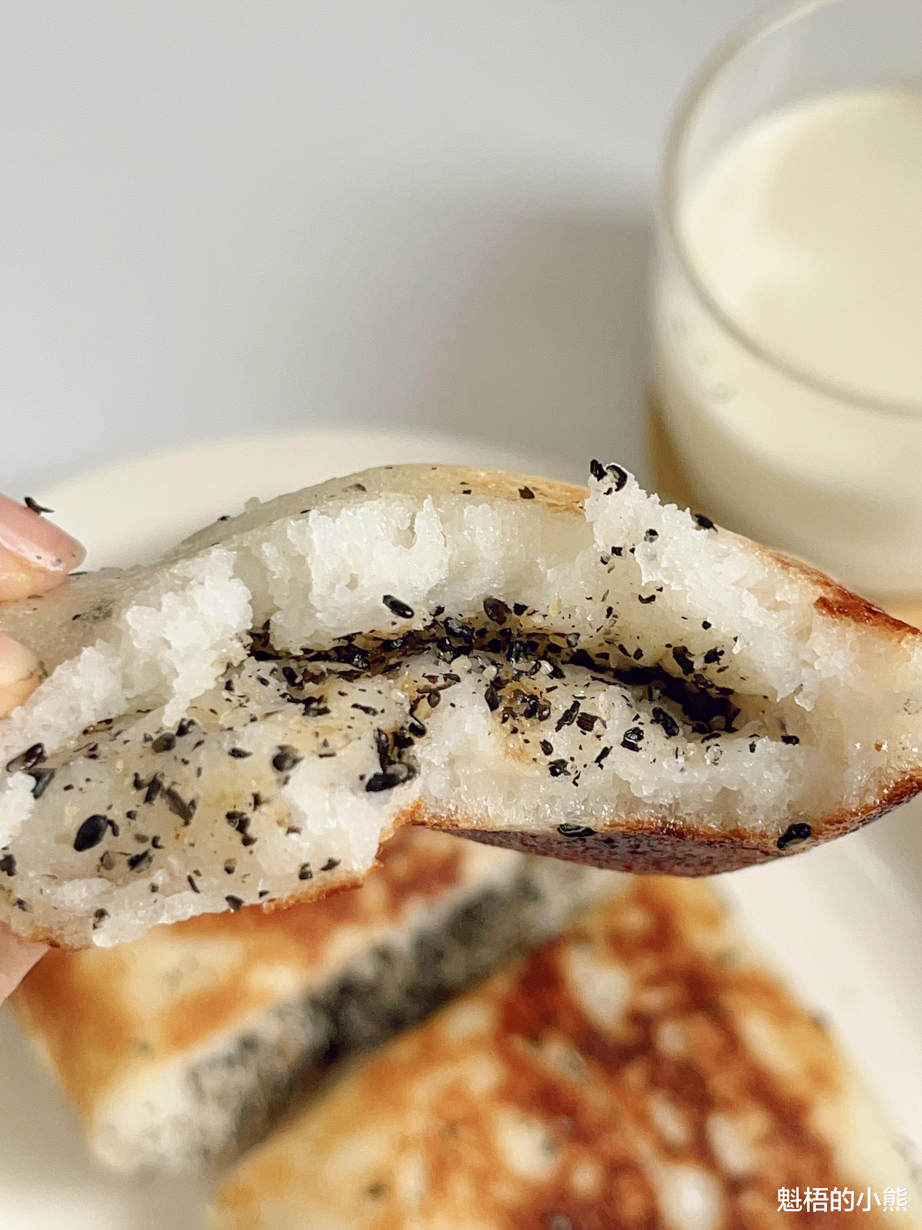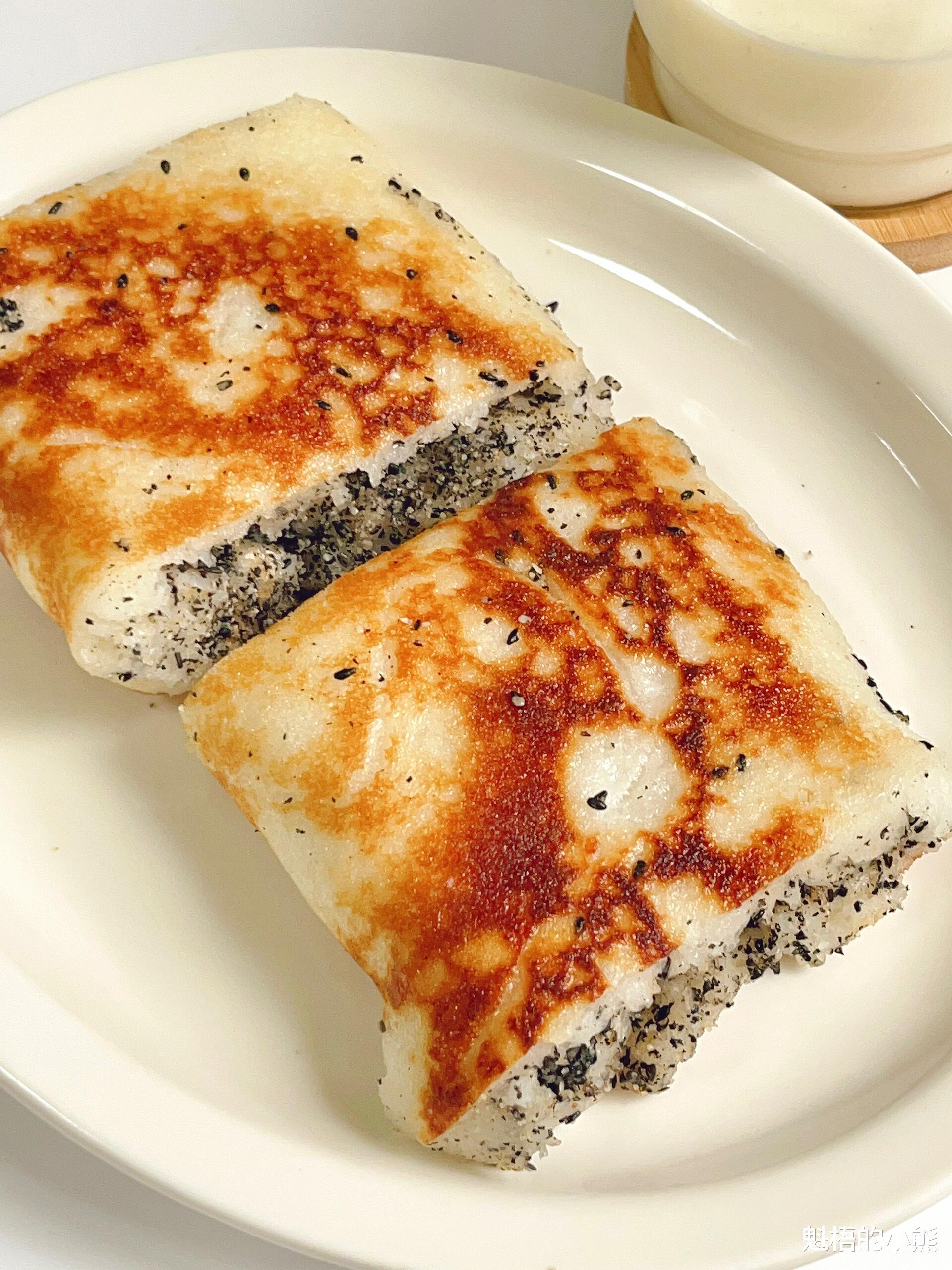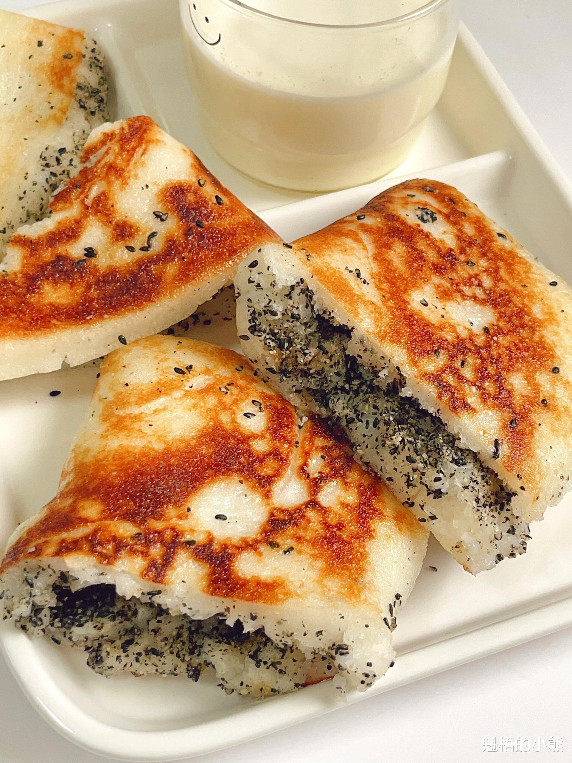 成品香煎黑芝麻脆皮米糕,外皮金黄焦脆,咬下“咔嚓”作响;内里米糕软糯细腻,融化的红糖形成温润流心,搭配醇厚的黑芝麻香气,甜而不腻、香而不齁。底部焦香入味,内层柔软有韧性,双重口感层层交织。搭配一杯热牛奶或是温热豆浆,就是营养又治愈的完美早餐。孩子上学前吃两块,饱腹感十足,一上午都元气满满。