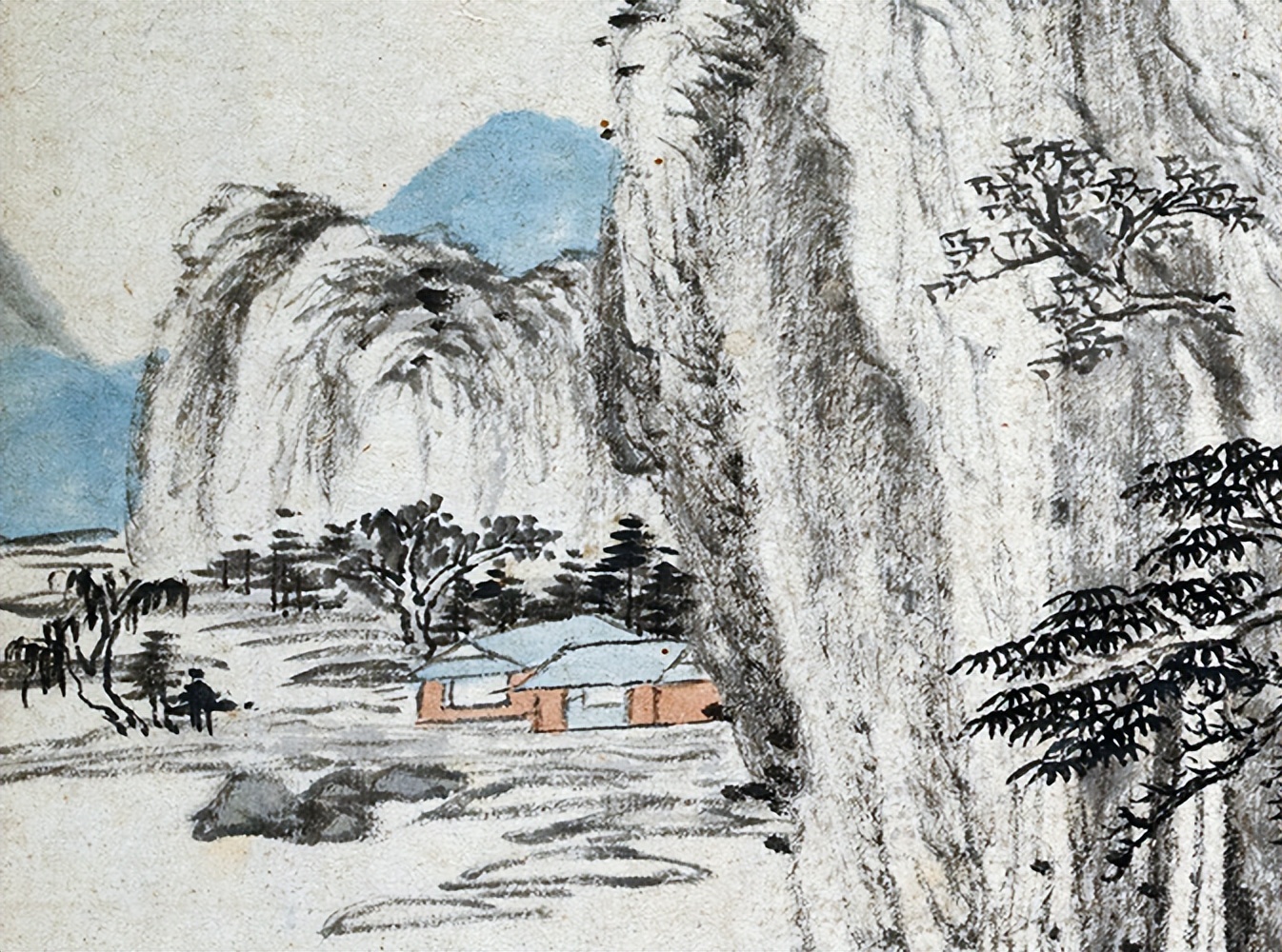 当然了,《溪山泛舟》并不是完美的作品。因构图问题导致画面有一种割裂感。这并不影响他在笔墨方面的表现力。