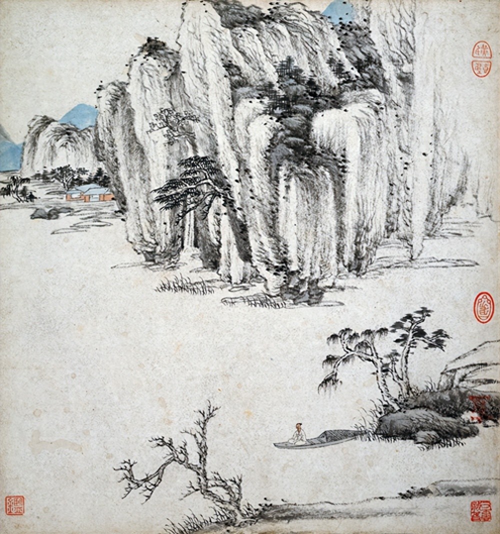 近现代山水画创作讲究创新,最好是形成与古不同的面貌。在这种环境下,四王山水成为反面教材。看懂了《溪山泛舟》的笔墨,就会恍然大悟,王鉴一点儿也不差,甚至可以与四僧中的八大、石涛一较高低。